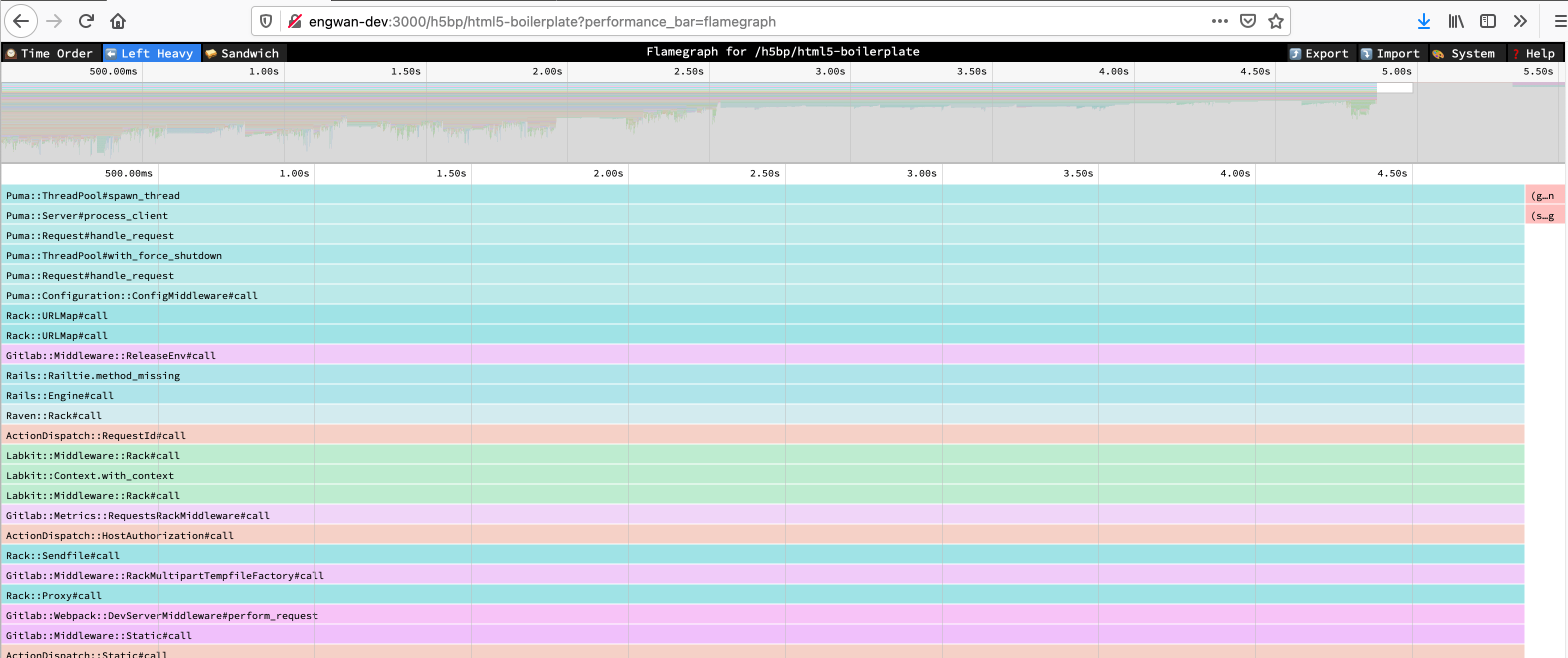 stackprof --d3-flamegraph tmp/profile.dump > flamegraph.html