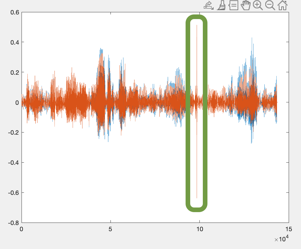 and you will have the glitch in the wave output at about 2 s. You can also use any other output format but using EXT does not add any rendering on top of the transport channels.