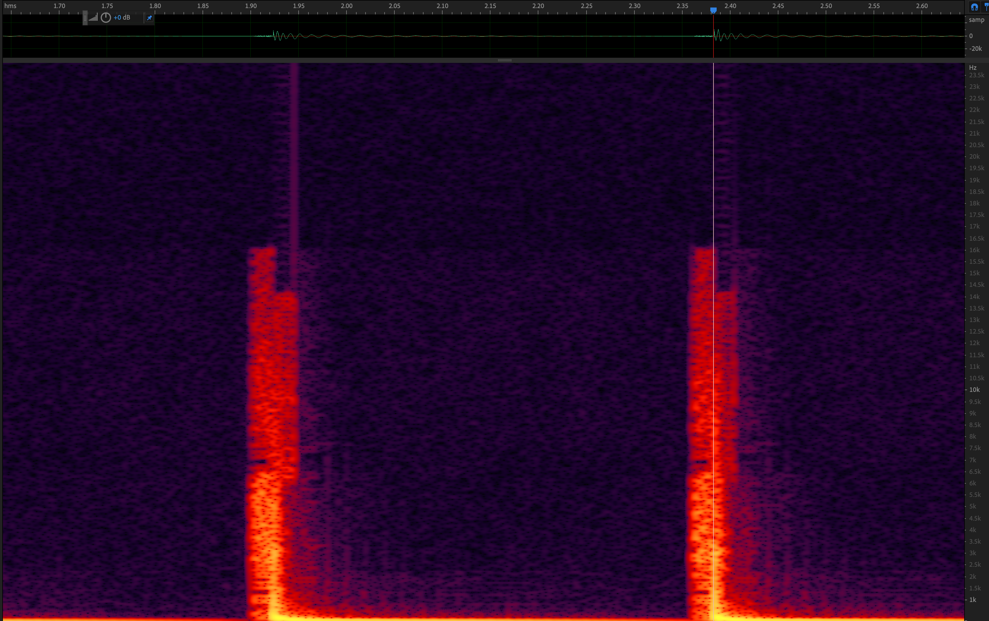 This was detected with one of the characterization items. For the mid-channel there are some noise bursts happening for some transients causing and ugly audible artifact. These happen for example at frames 96 and 119 as can be seen below: