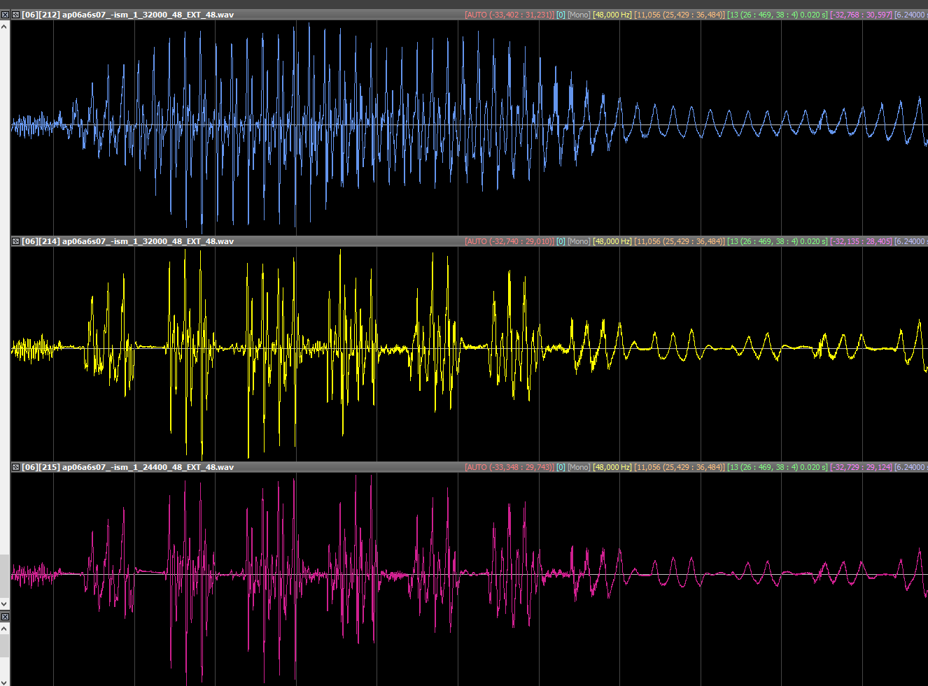 The fixed point encoder is not able to produce a decent synthesis for ISM-1 at 32 and 24.4 kbps. This also means that all mode using the core at 32 and 24.4 kbps ( or bitrates close to that) will suffer similar issues.