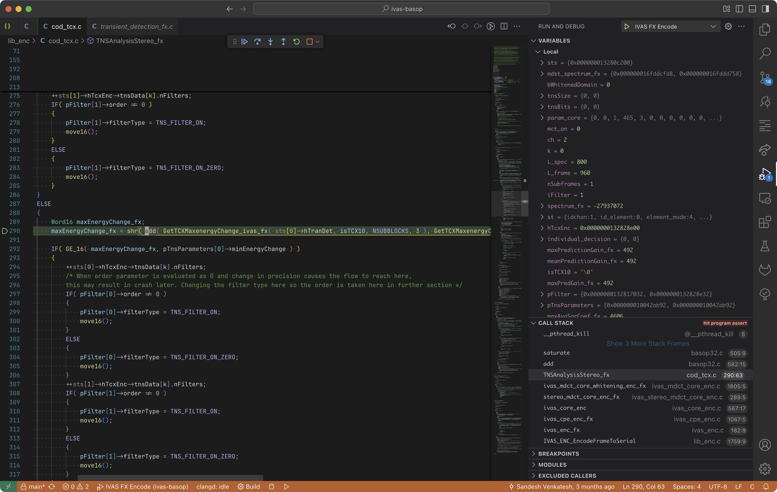 Encoder crash for Stereo in TNSAnalysisStereo_fx()