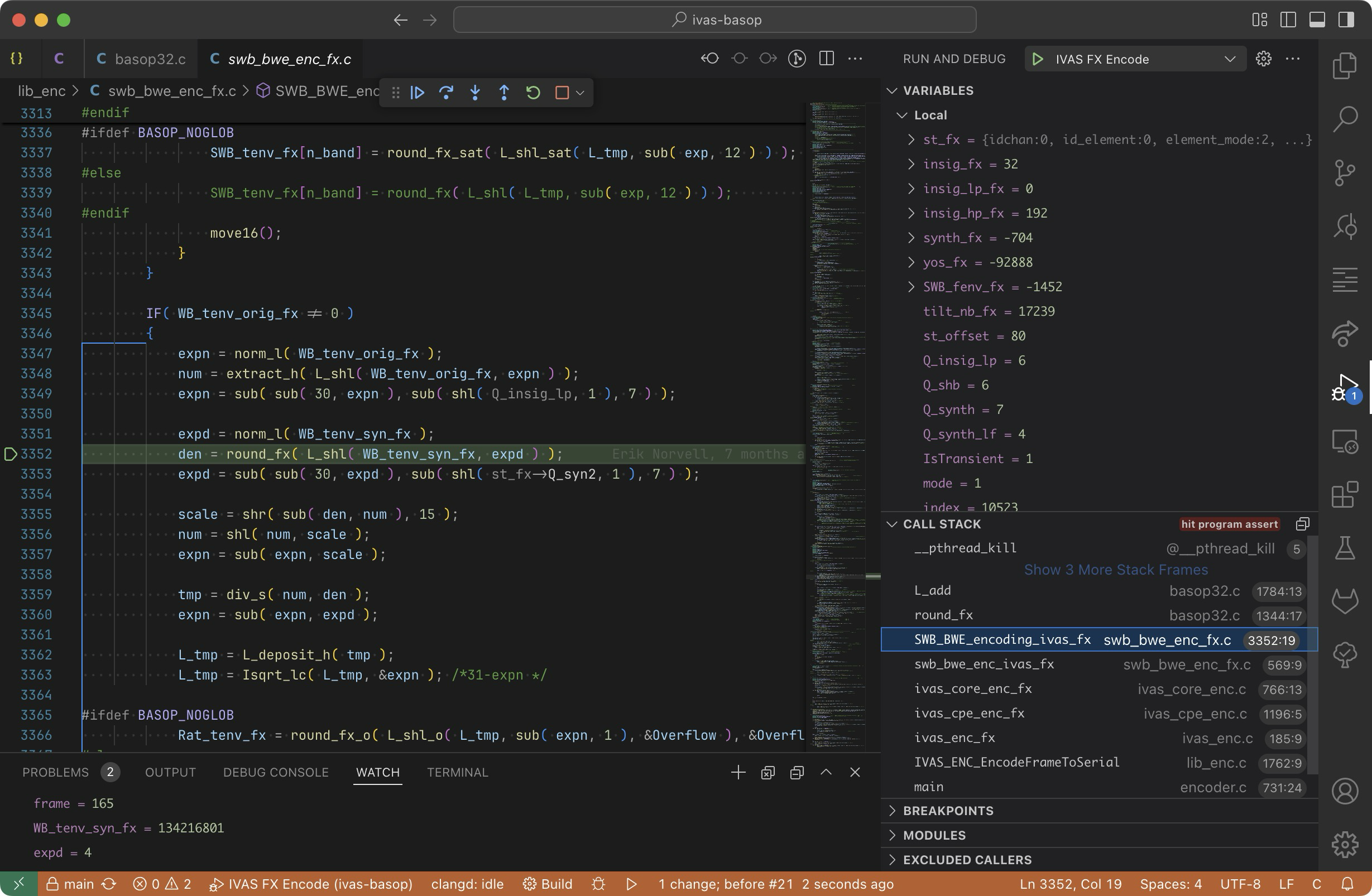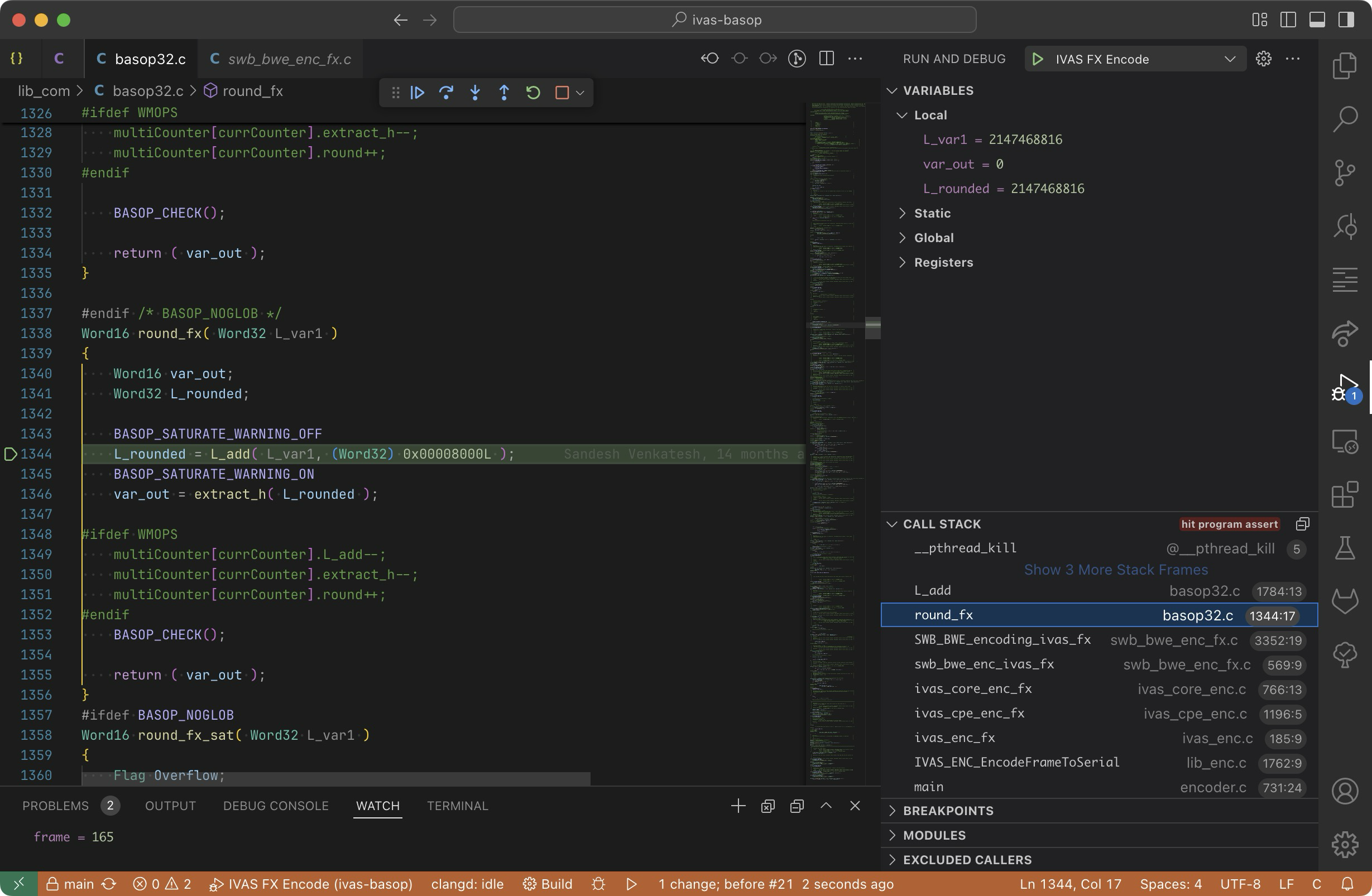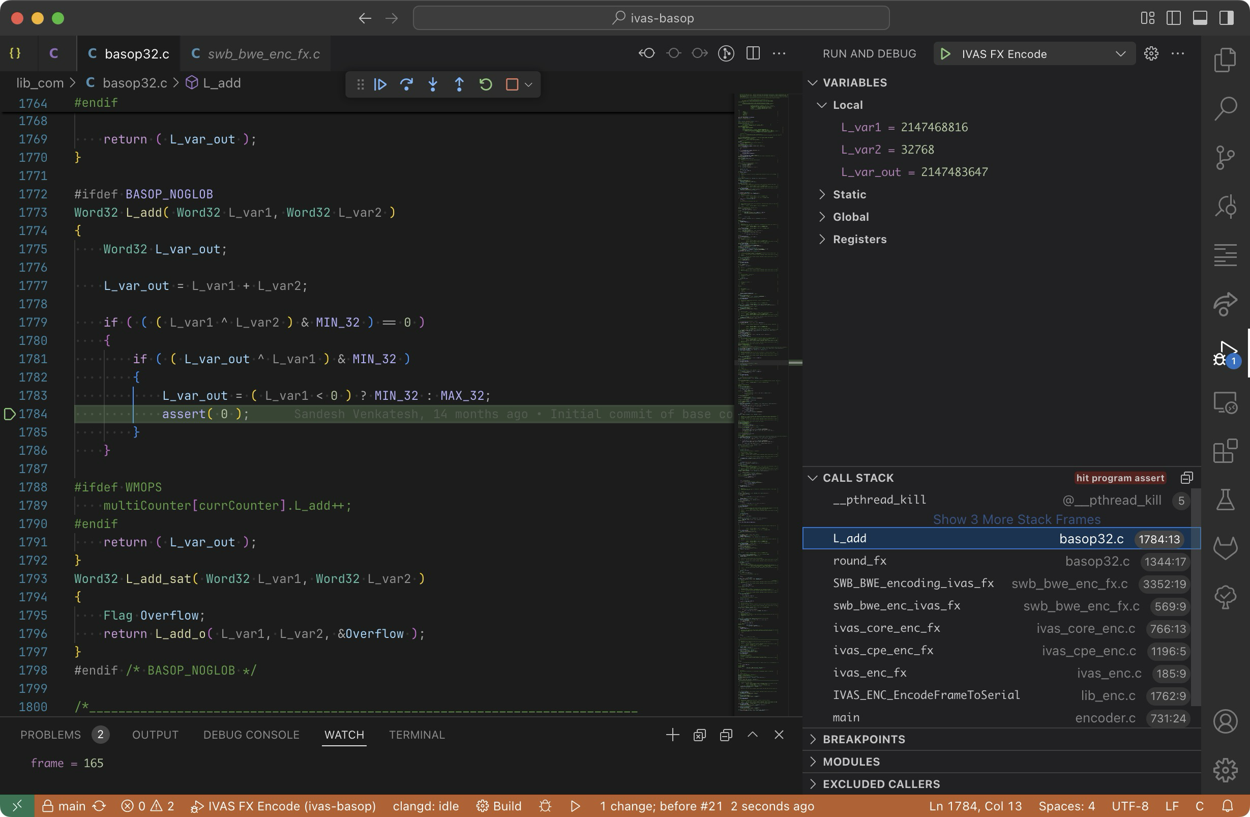Assertion failed: (0), function L_add, file basop32.c, line 1784.
