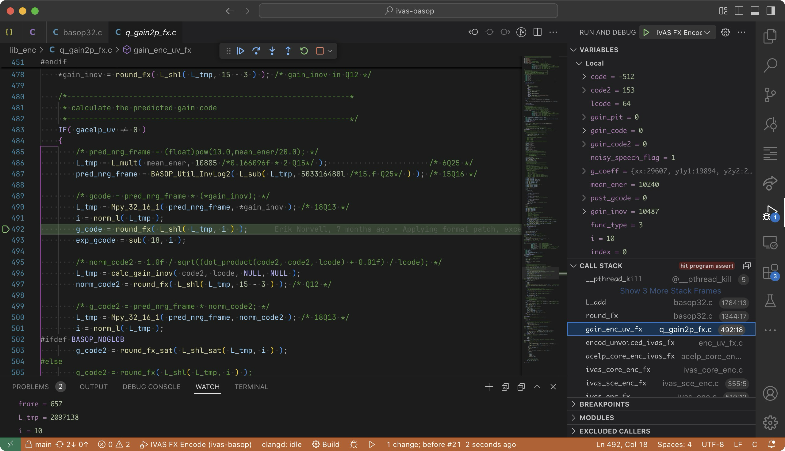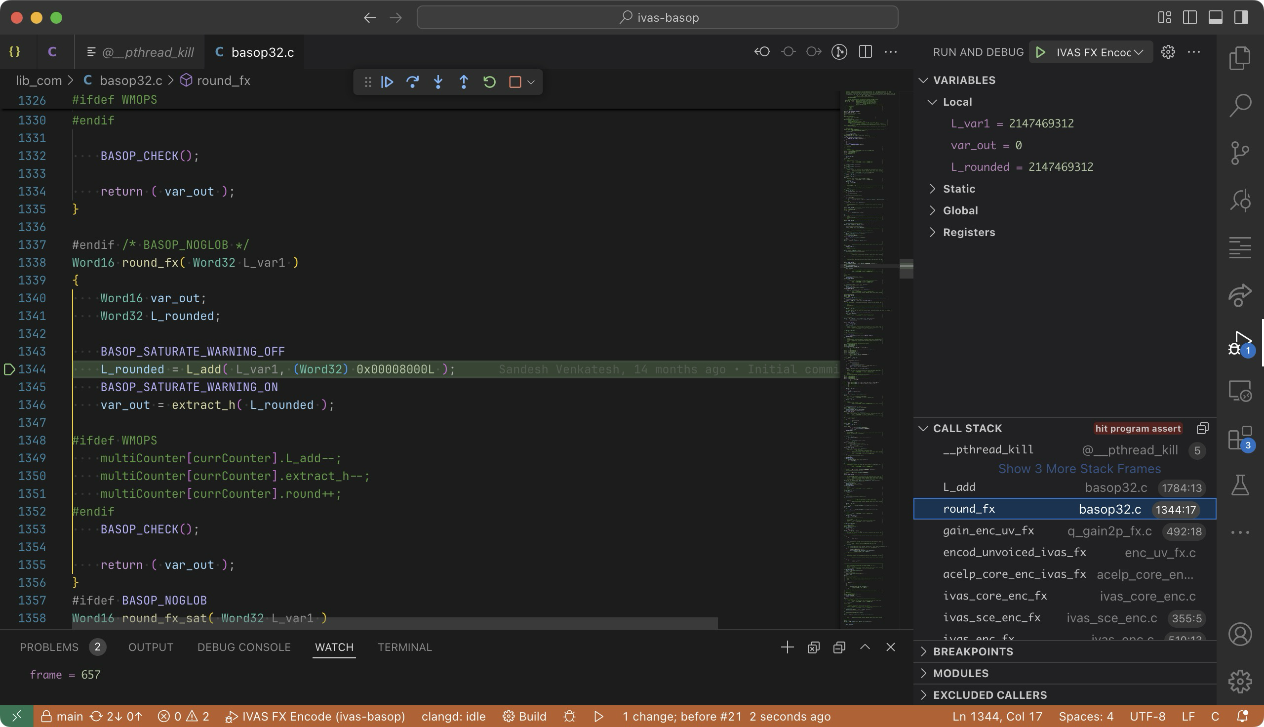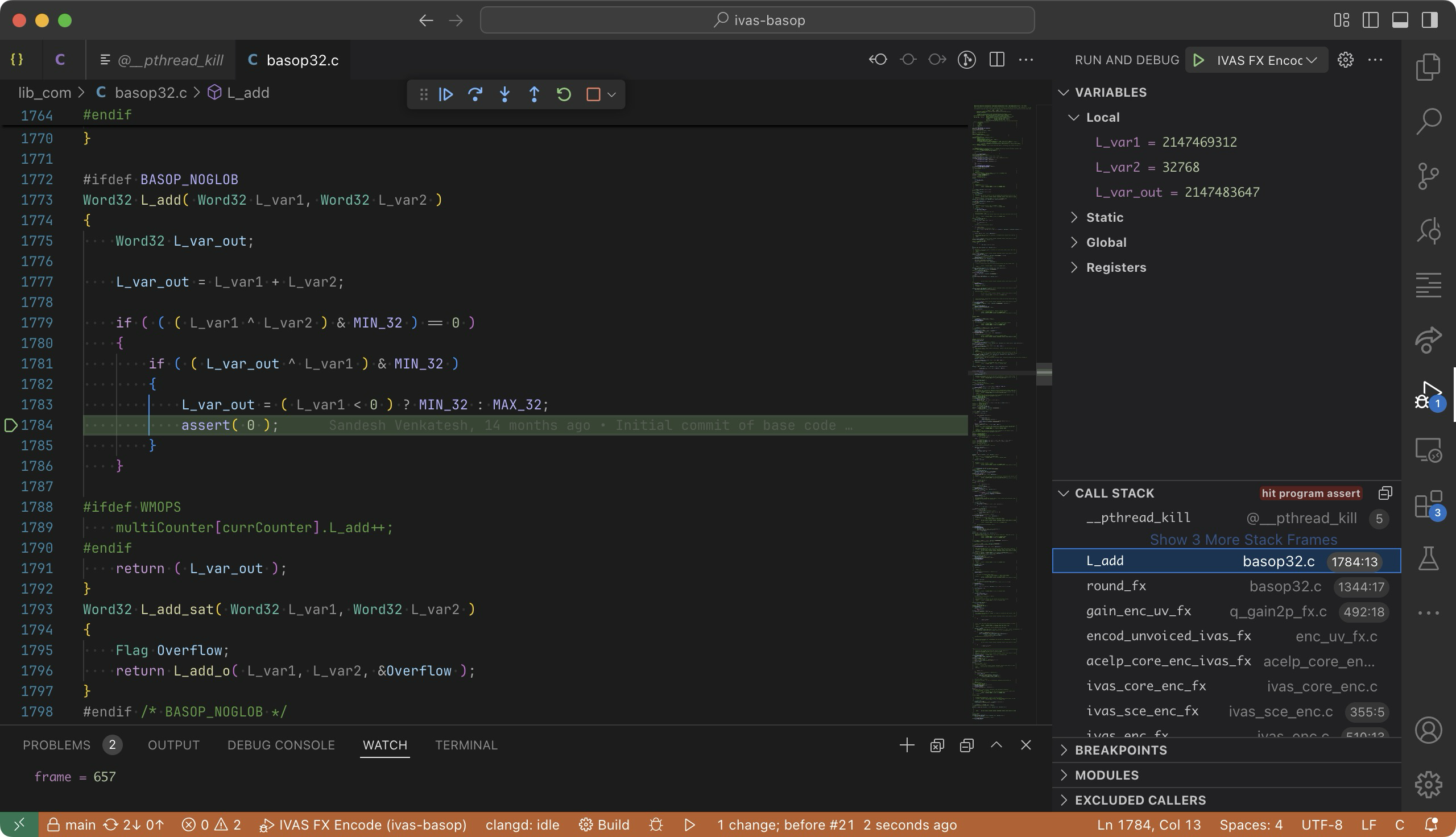Assertion failed: (0), function L_add, file basop32.c, line 1784.