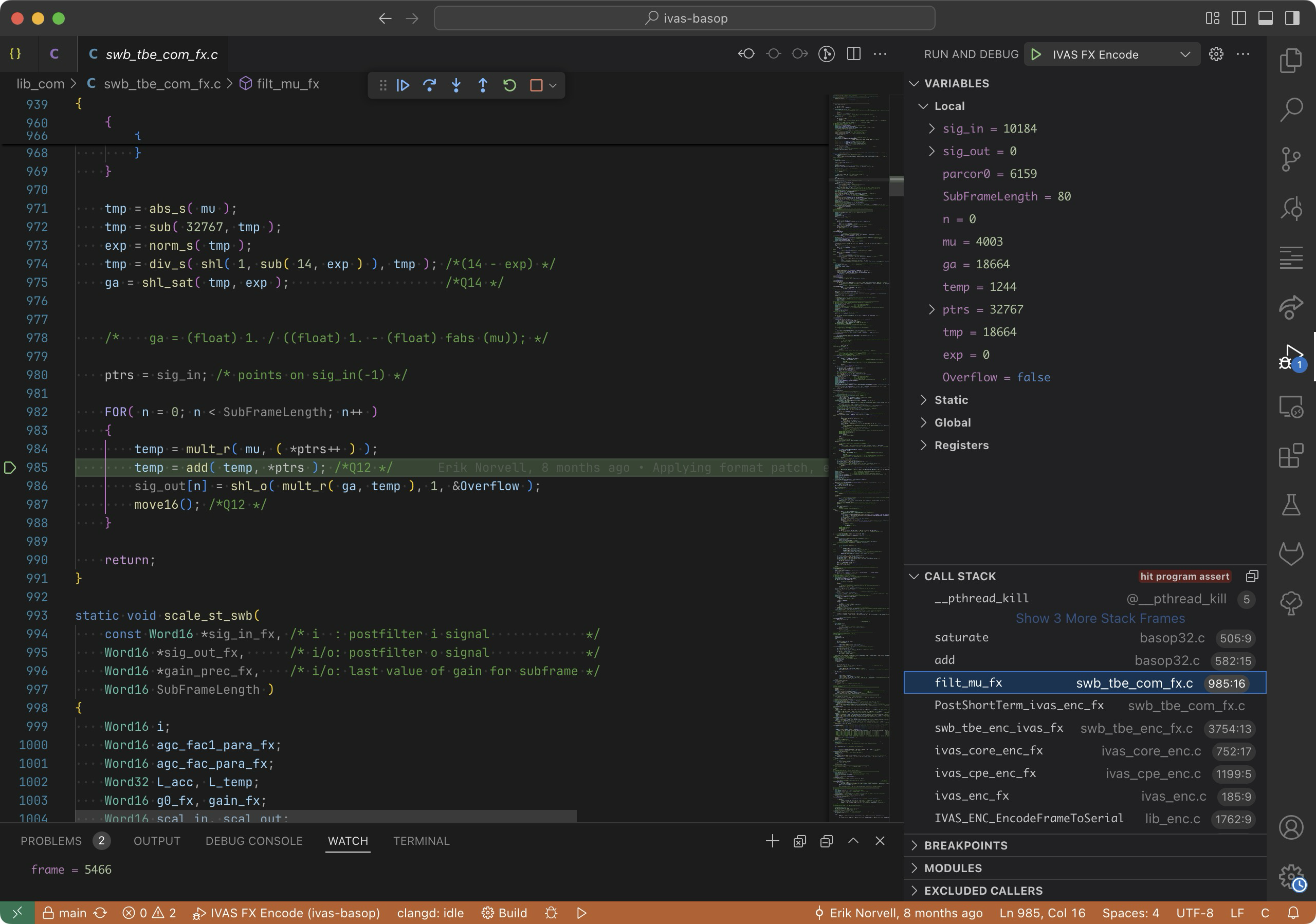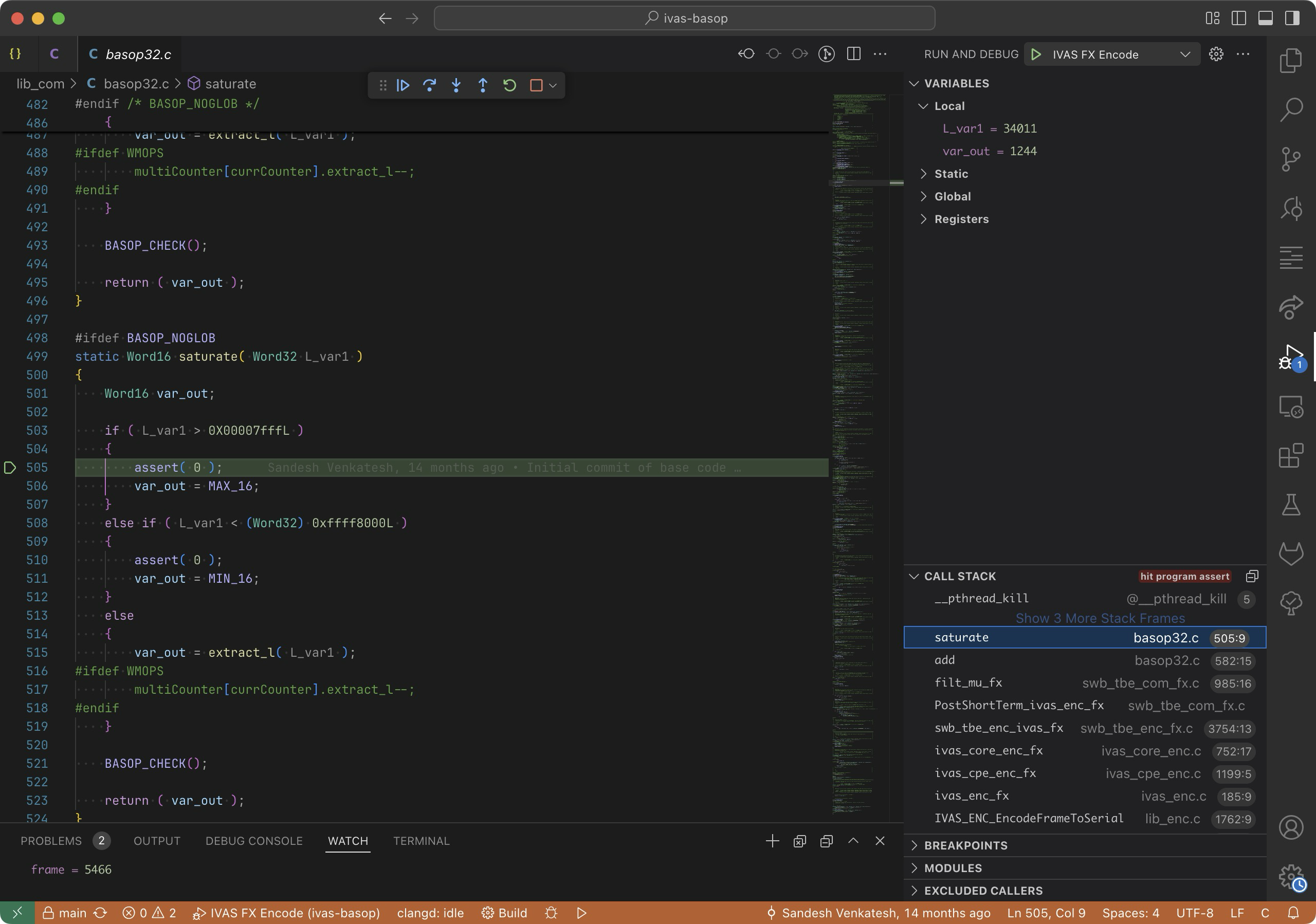 Assertion failed: (0), function saturate, file basop32.c, line 505.