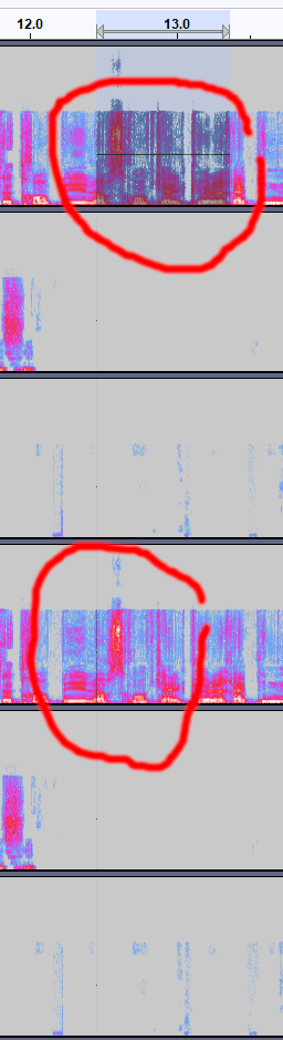 It is less strongly audible with BINAURAL output. It appears with and without DTX. The position in the item is highlighted below.