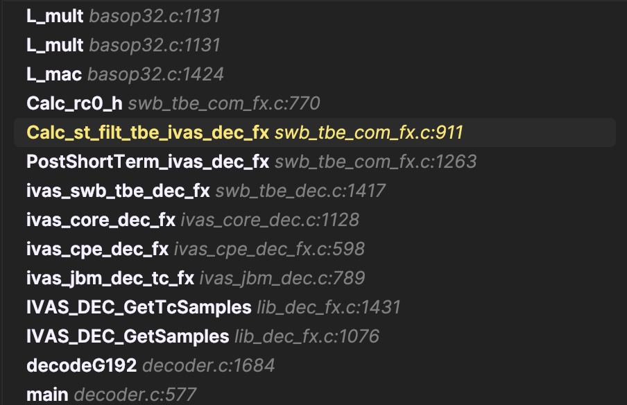 There is an assert in frame 540 of BASOP decoder when fed with bitstream from BASOP encoder using OMASA LTV input with bitrate switching enabled. The stack trace is following:
