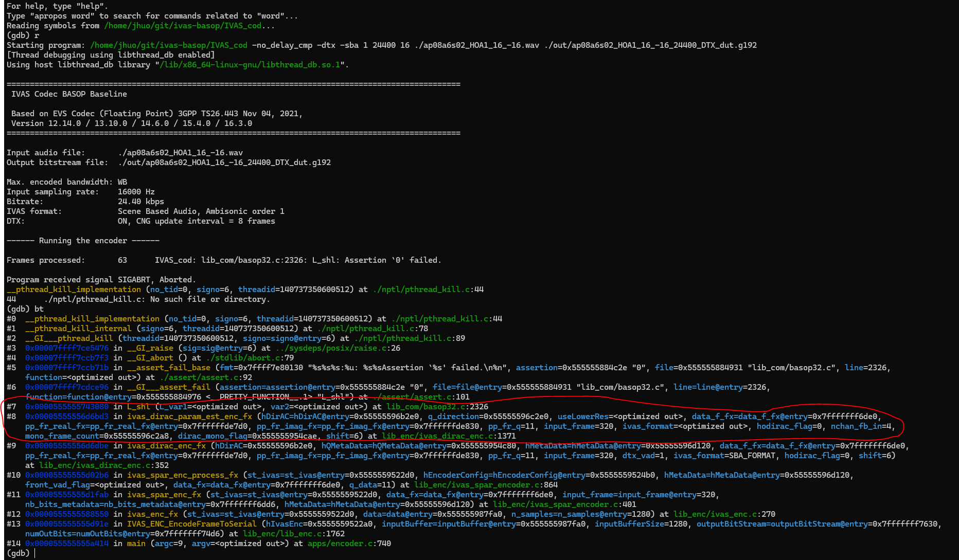 Encoder crashed when encoding 16k sampled -16LKFS leveled FOA input at 24.4kbps