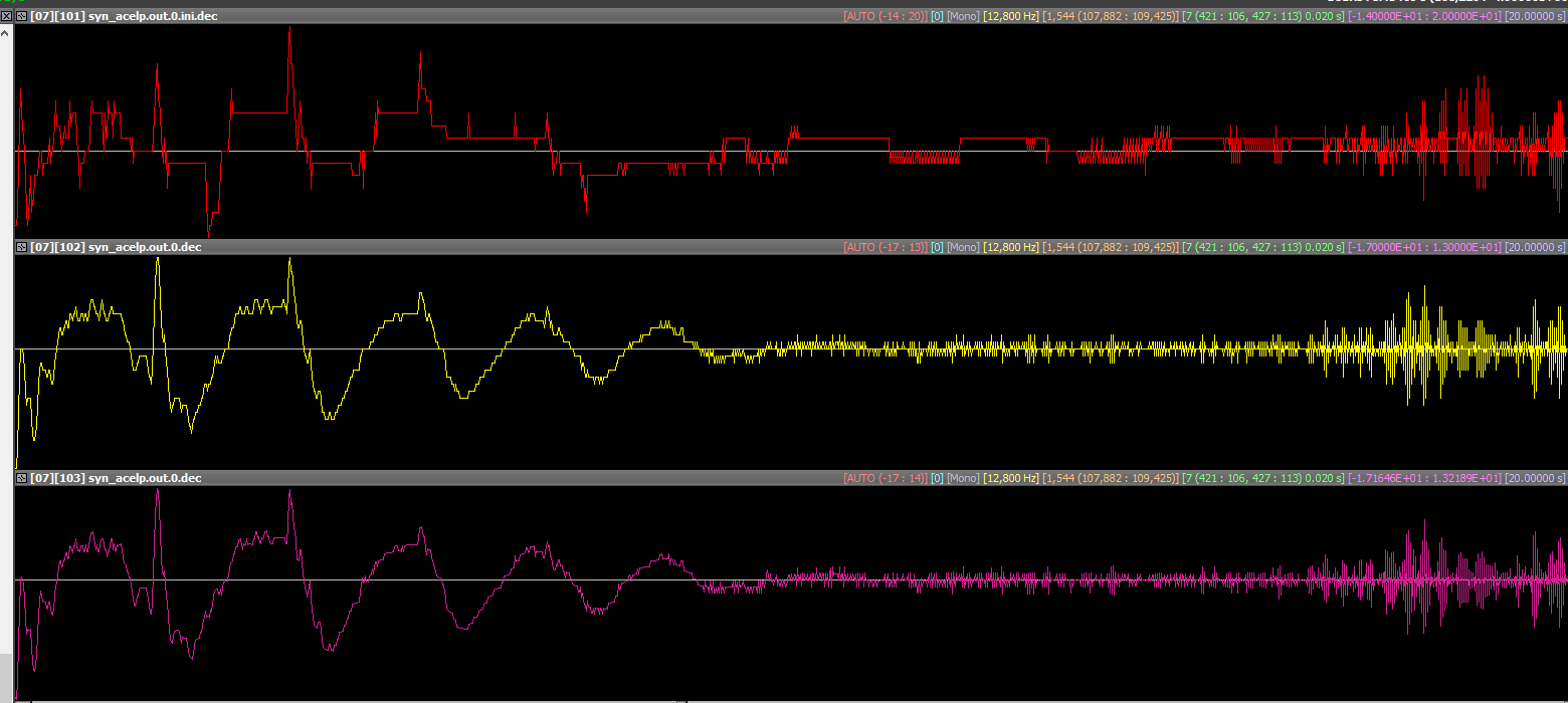 While working on #1232 (closed), we found that the update of prev_q_syn is wrongly done which caused Q_syn to almost always be -1 leading to a very poor ACELP synthesis quality for low level signals as show below: