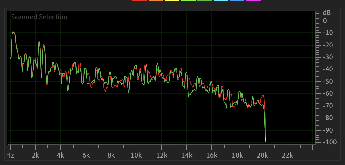 For input signal level +10dB there are spectral gaps observed. It seems there is an attenuation for BASOP output around frequencies 8-10kHz and then for the IGF region the spectrum is different with several spectral gaps in various frequencies as can be seen from the spectrogram