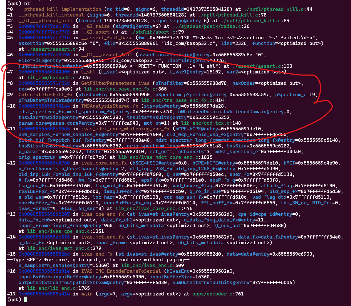 Back trace: