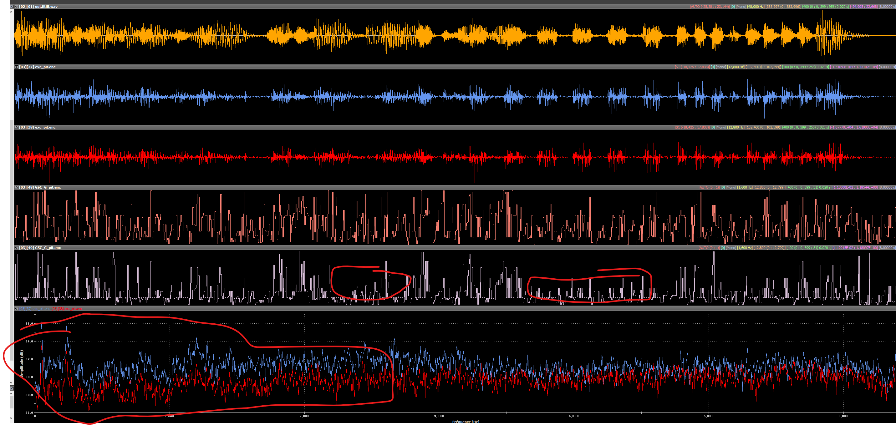 When forcing IVAS to GSC and analysing the output of the GSC module, it was observed that the fixed point pitch was often too low and the energy of the time domain excitation was not consistent with the floating point The figure below compares the excitation after the module enc_pit_exc_ivas() when GSC_IVAS_mode is forced to 1. When looking at the spectrum (last plot) it is possible to observe the energy mismatch between float and fixed excitation.