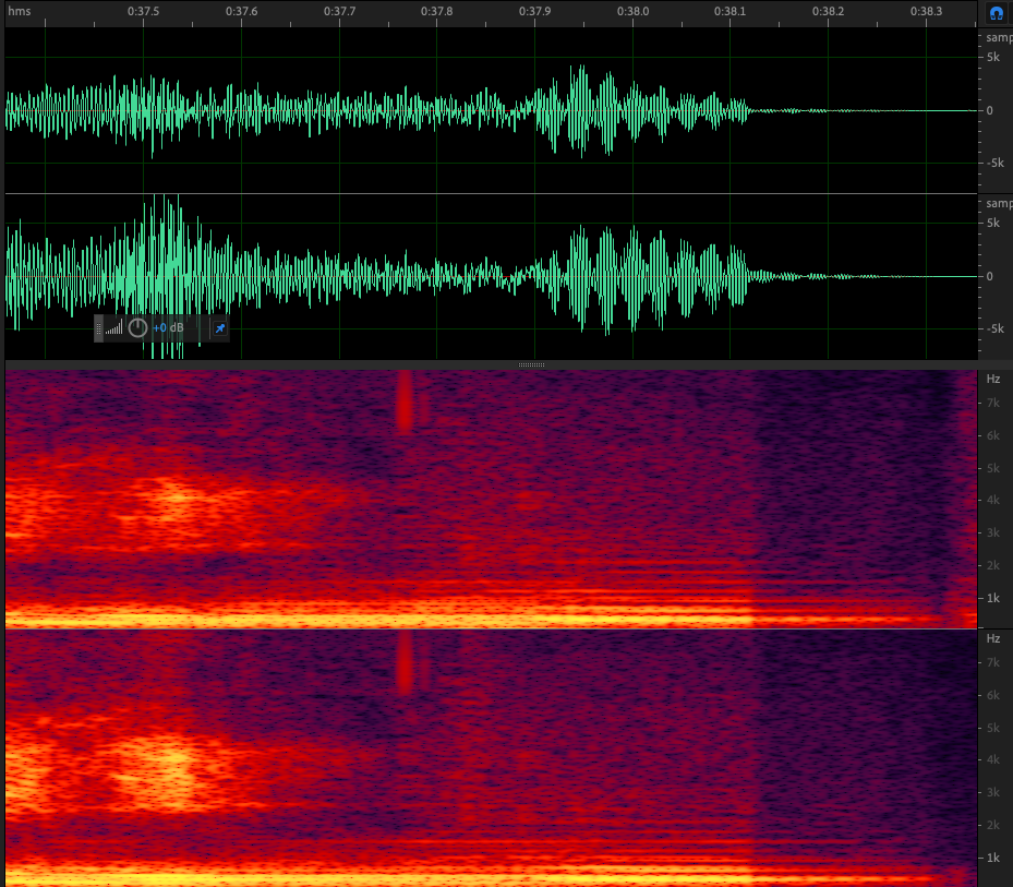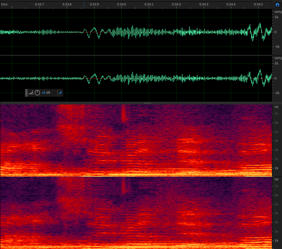 There are audible clicks for timestamps 0:34.000s and 0:37.760s that seem to be of the same issue:
