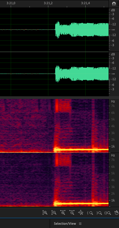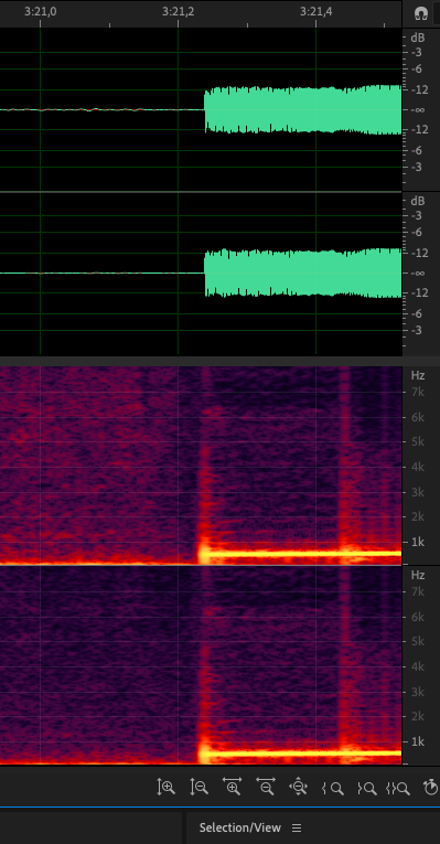 The artifact occurs very late in the signal at 3:21.24. It can be that this is the same issue as in #1401 (closed) and it just occurs more often/at other places with DTX on. Thus, this should be checked only after #1401 (closed) is resolved!