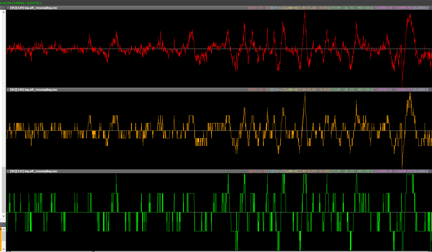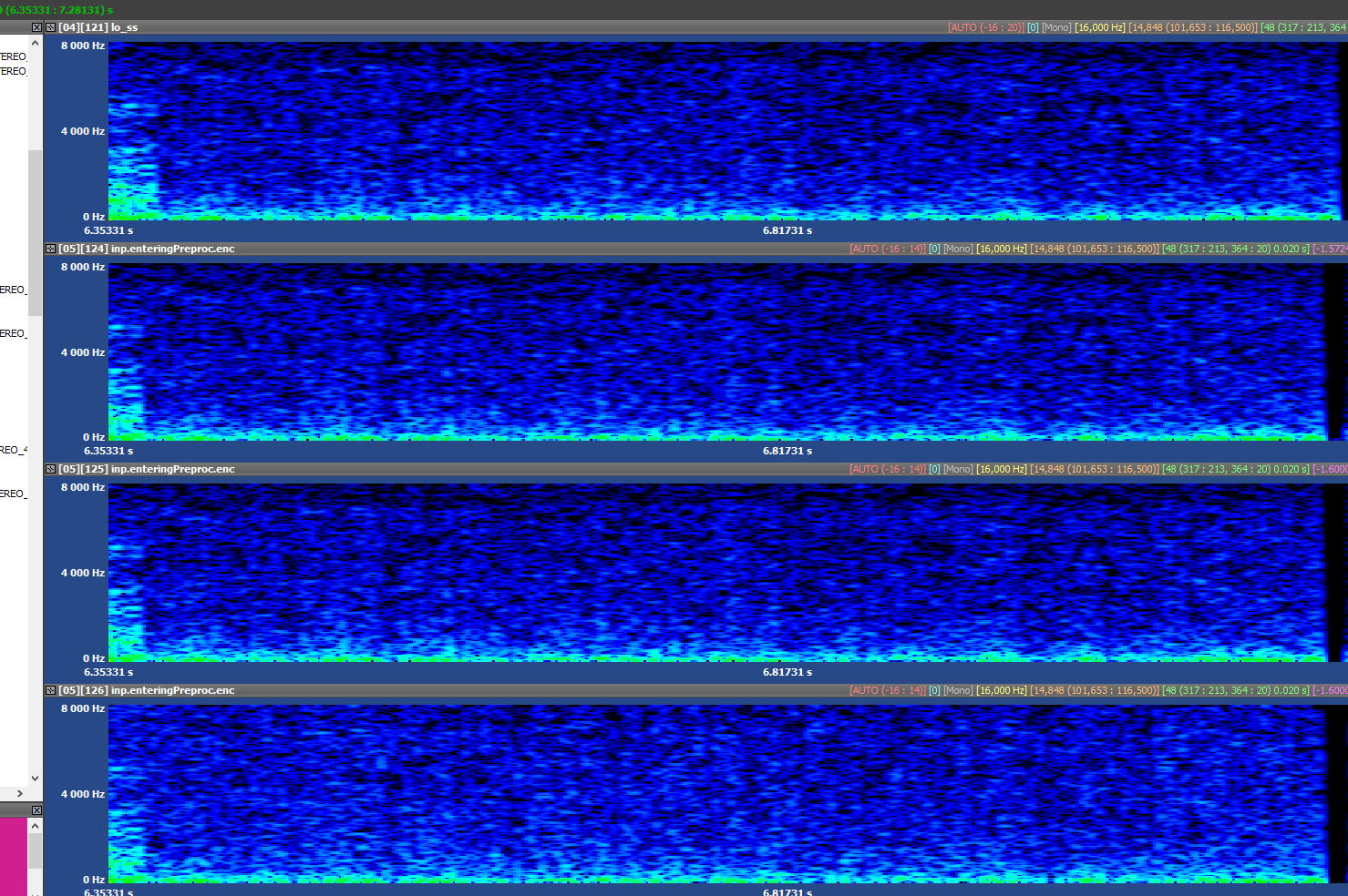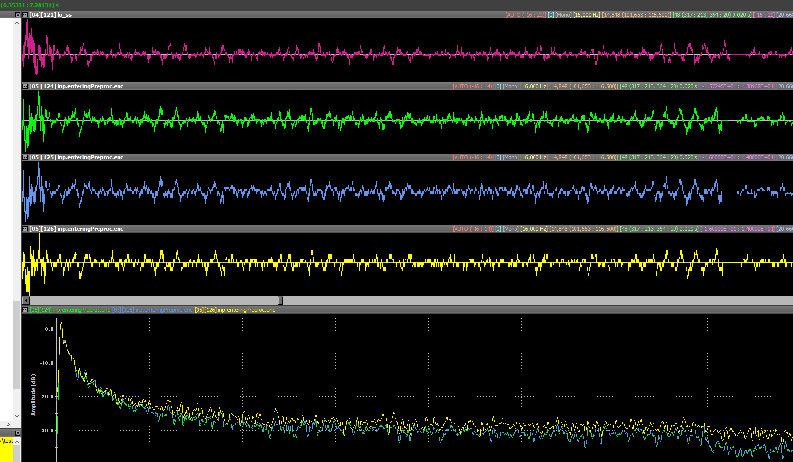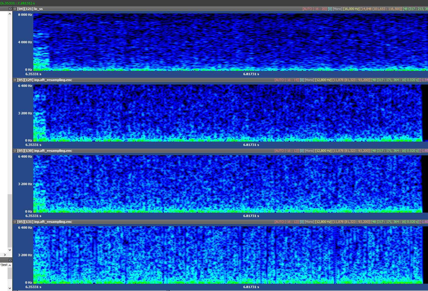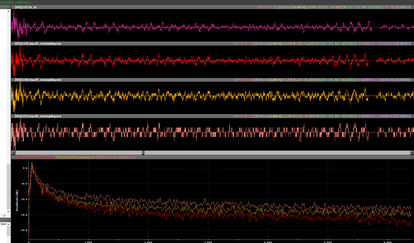 The signal below have been extracted for the EVS at 13.2 kbps and ISM-1 at 13.2 kbps for 16kHz input signal.
