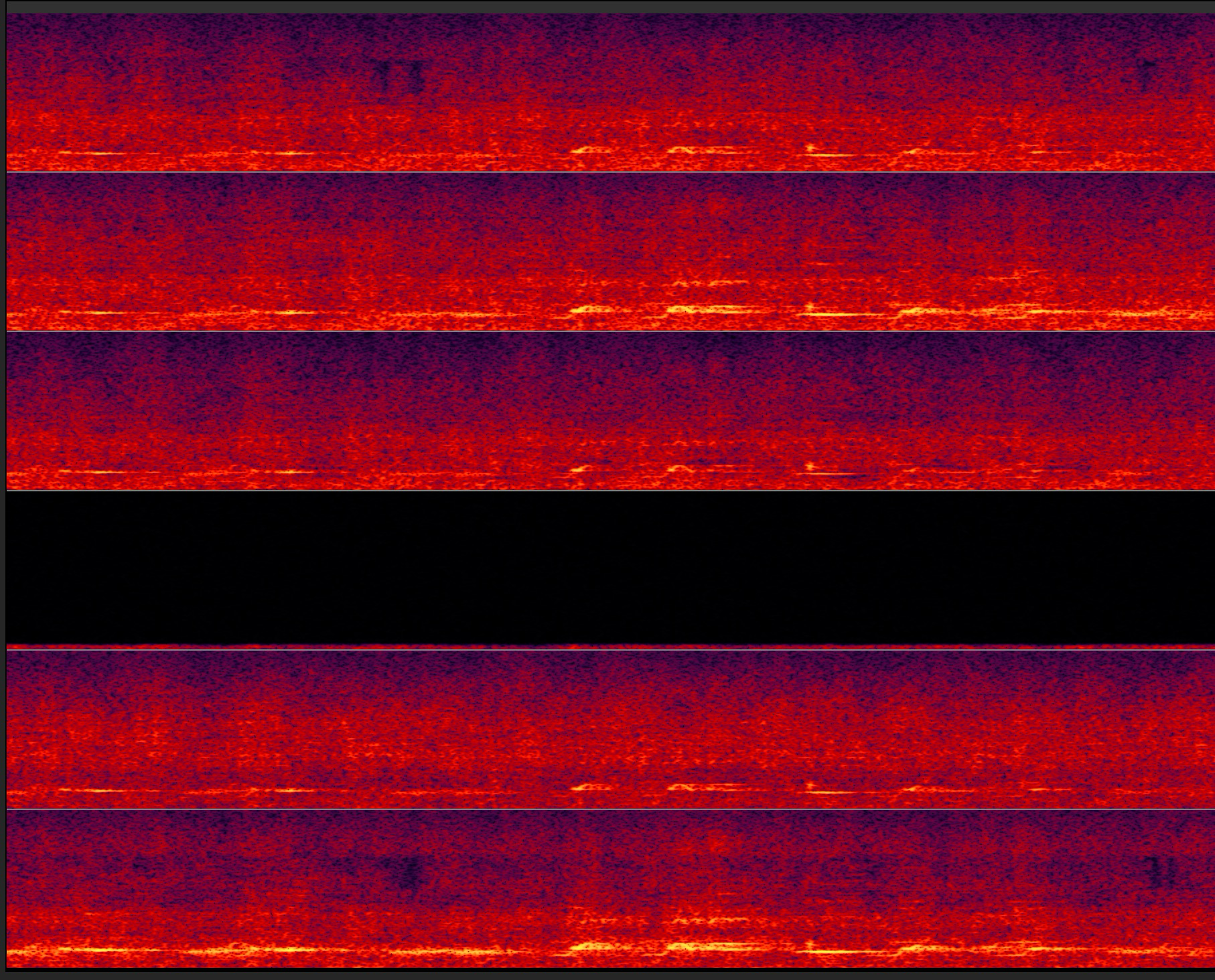 The Left (1) and Right Surround (6) channels show spectral holes in this region compared to the float reference at 1:00 onwards in the LTV: