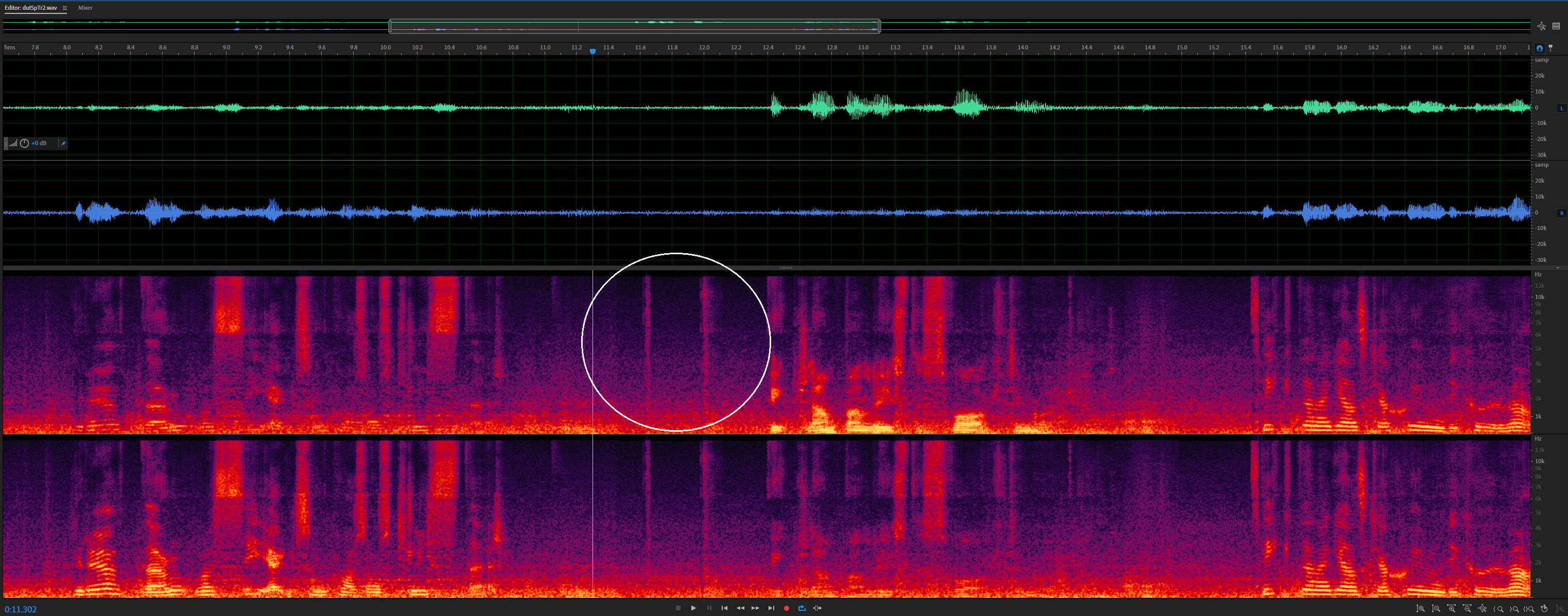 The difference after 10 seconds causes fixed point suppressing the train sound in the background.