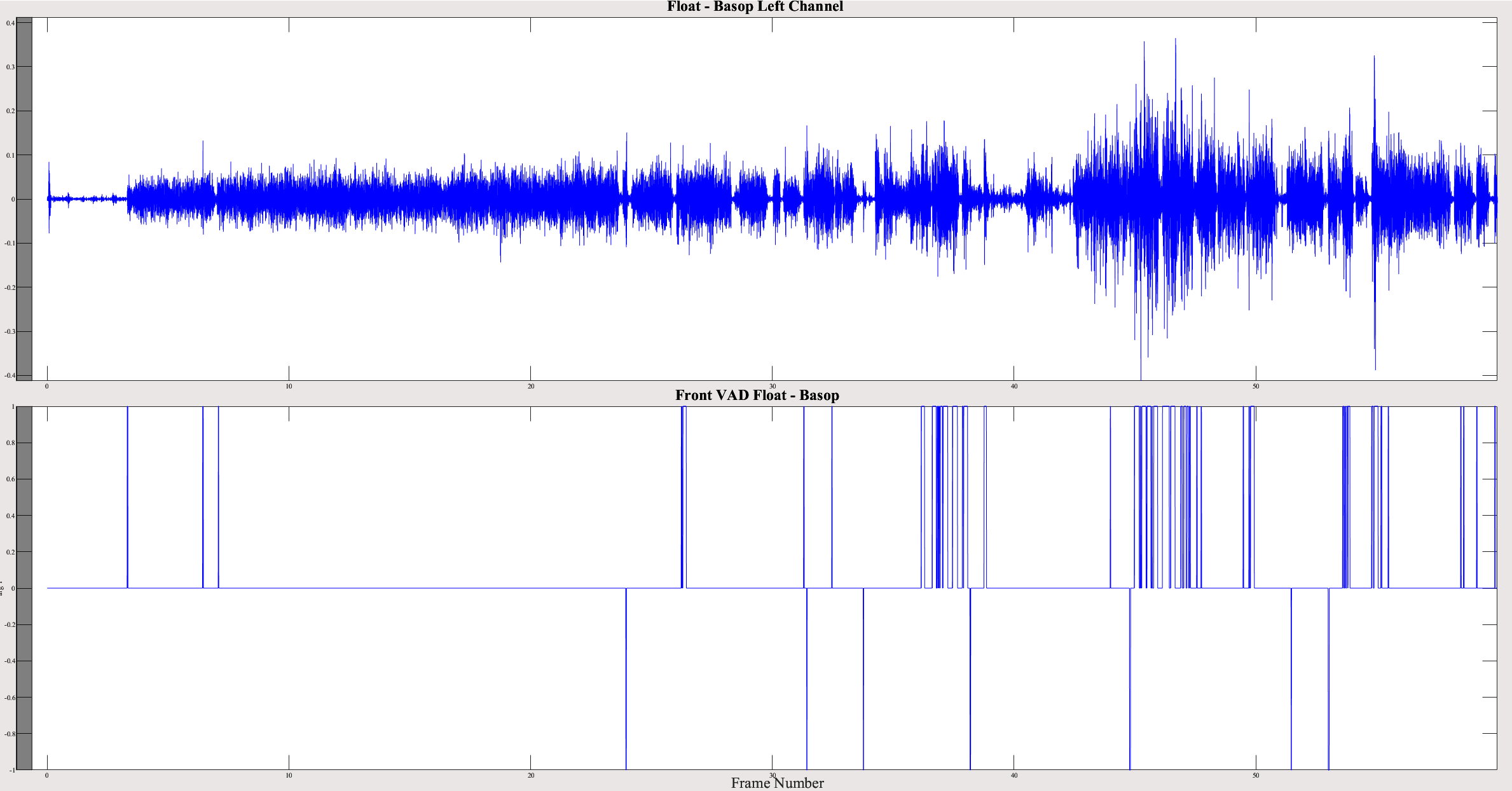 For the same item, there is an energy increase in higher frequencies around 17 seconds, where frontVAD differs.