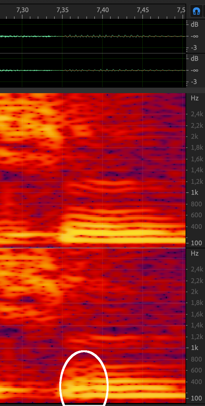 In a clean speech item with no background noise, the basop encoder produces additional plop-like artifacts in the decoded speech signal that are not in the output when encoded with the floating point encoder. Occasions are e.g.