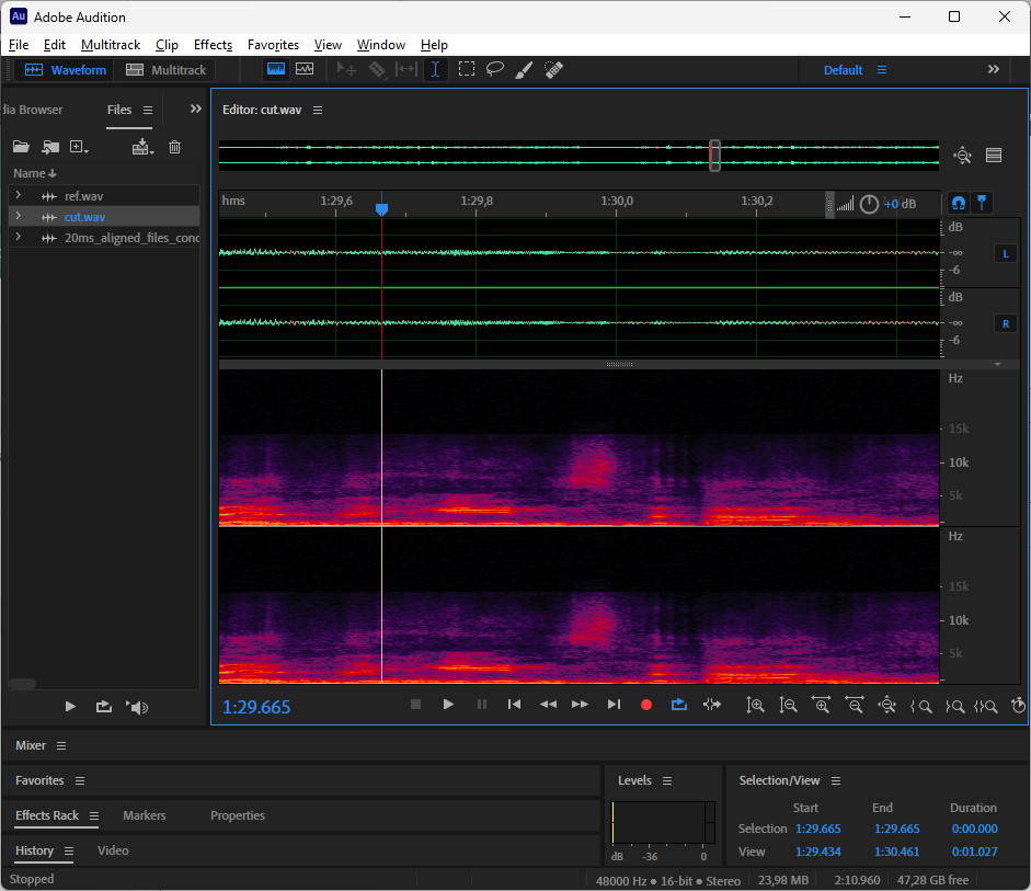 IVAS_cod.exe -stereo 16400 48 20ms_aligned_files_concatenated.wav cut.192