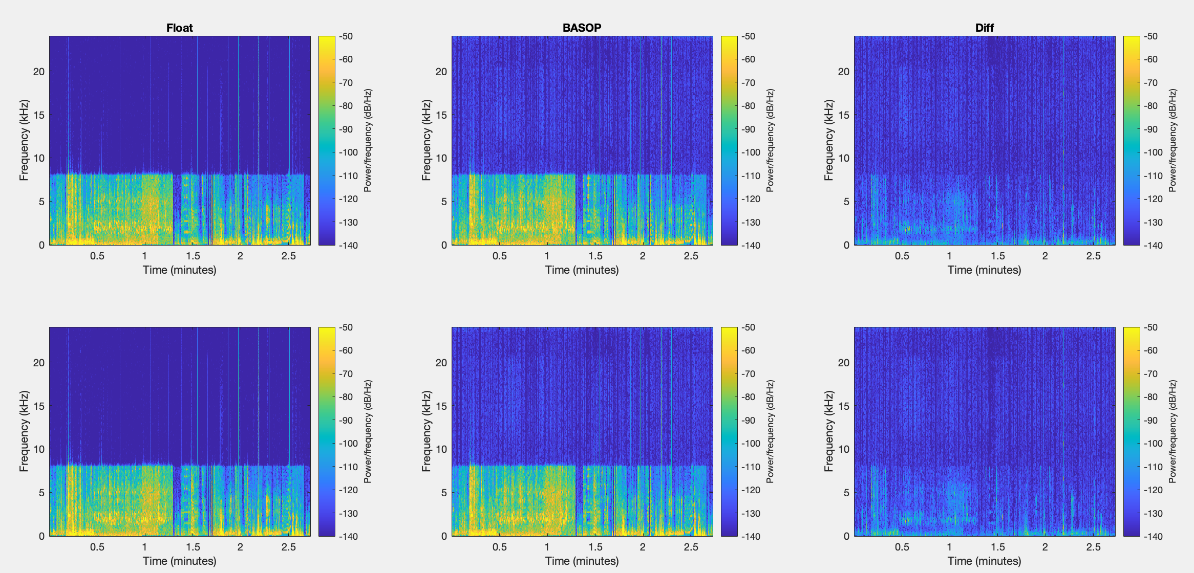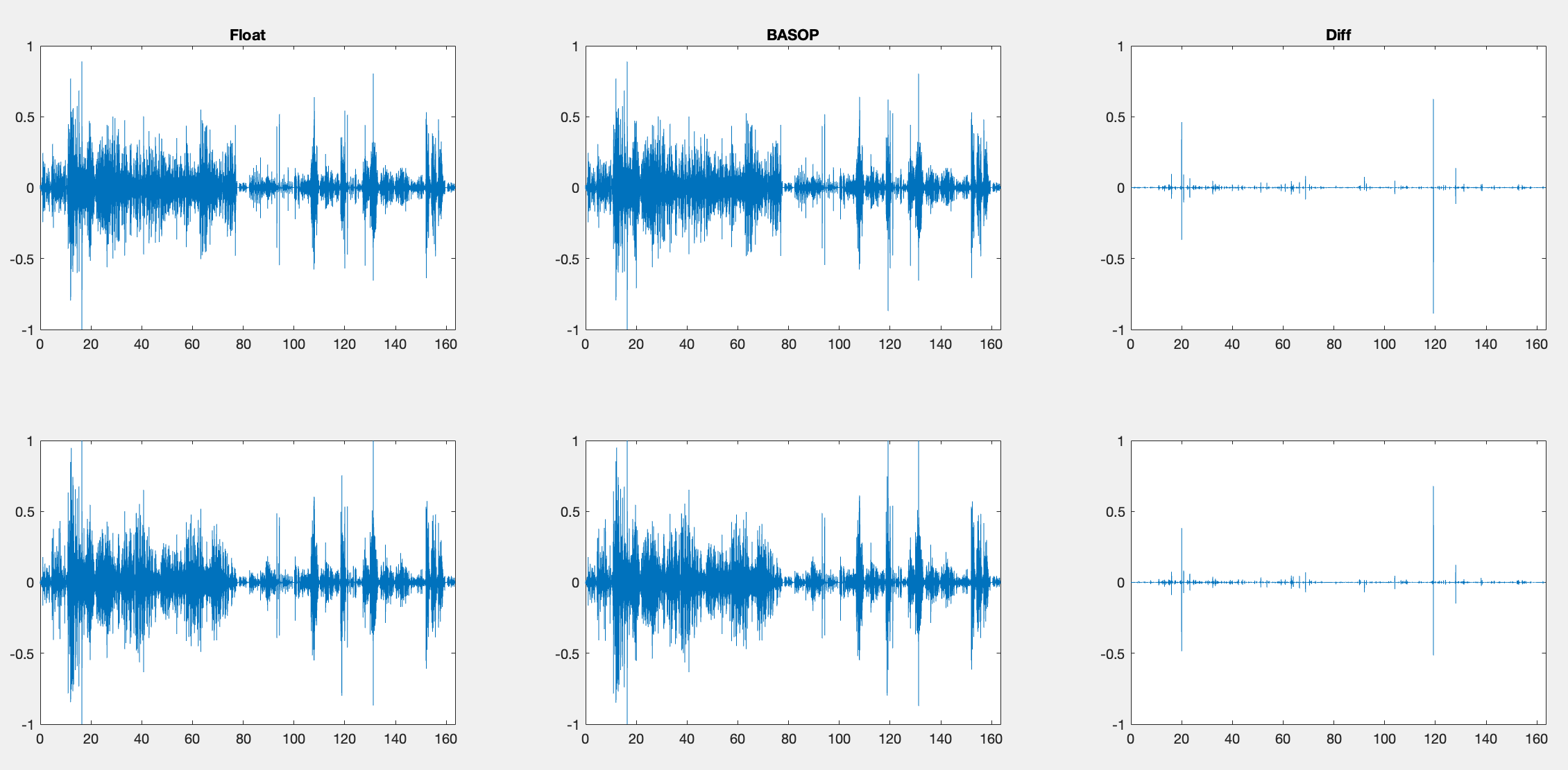 There is a somewhat high (18.4) MLD score for McMASA BASOP decoder with rate switching and FER involved. Looking at spectrogram does not show any clear reason. Time-domain plot indicates a couple difference spikes but it is hard to say if these are the main reason. Plots below.