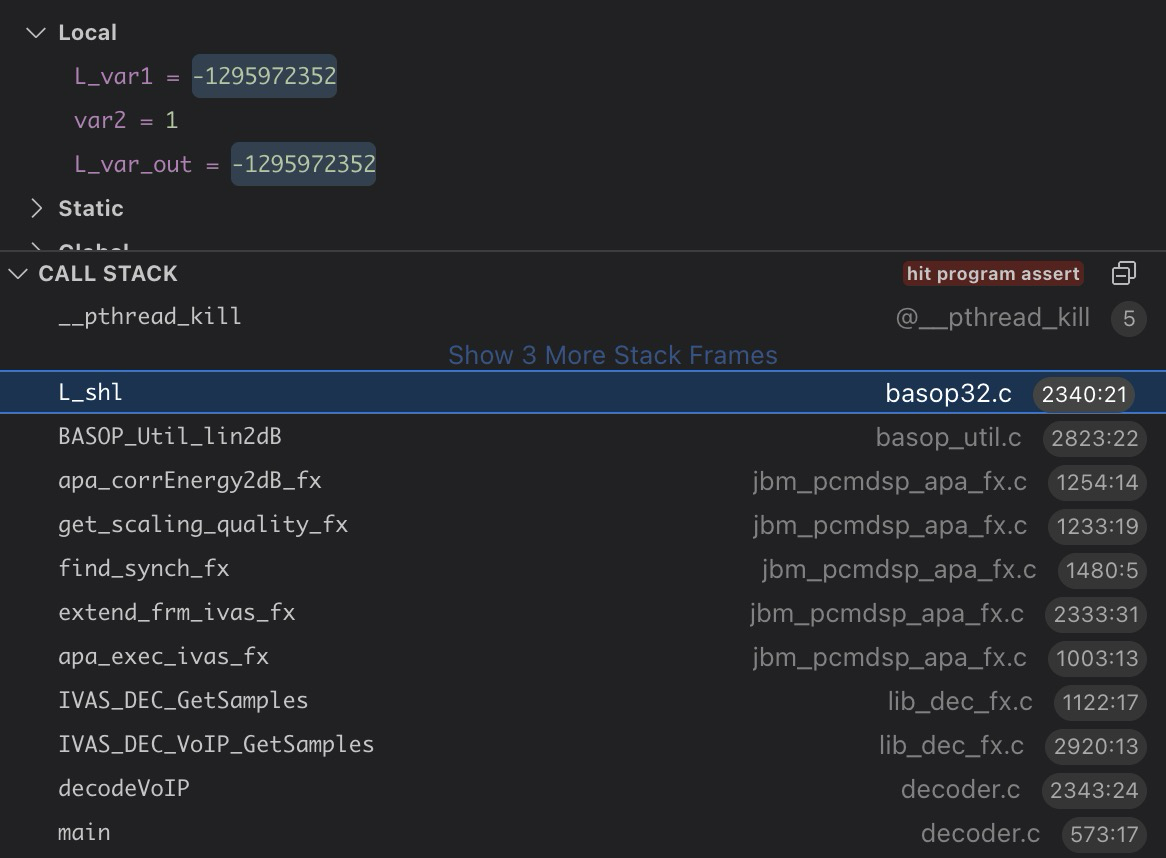 Assertion failed: (0), function L_shl, file basop32.c, line 2340.