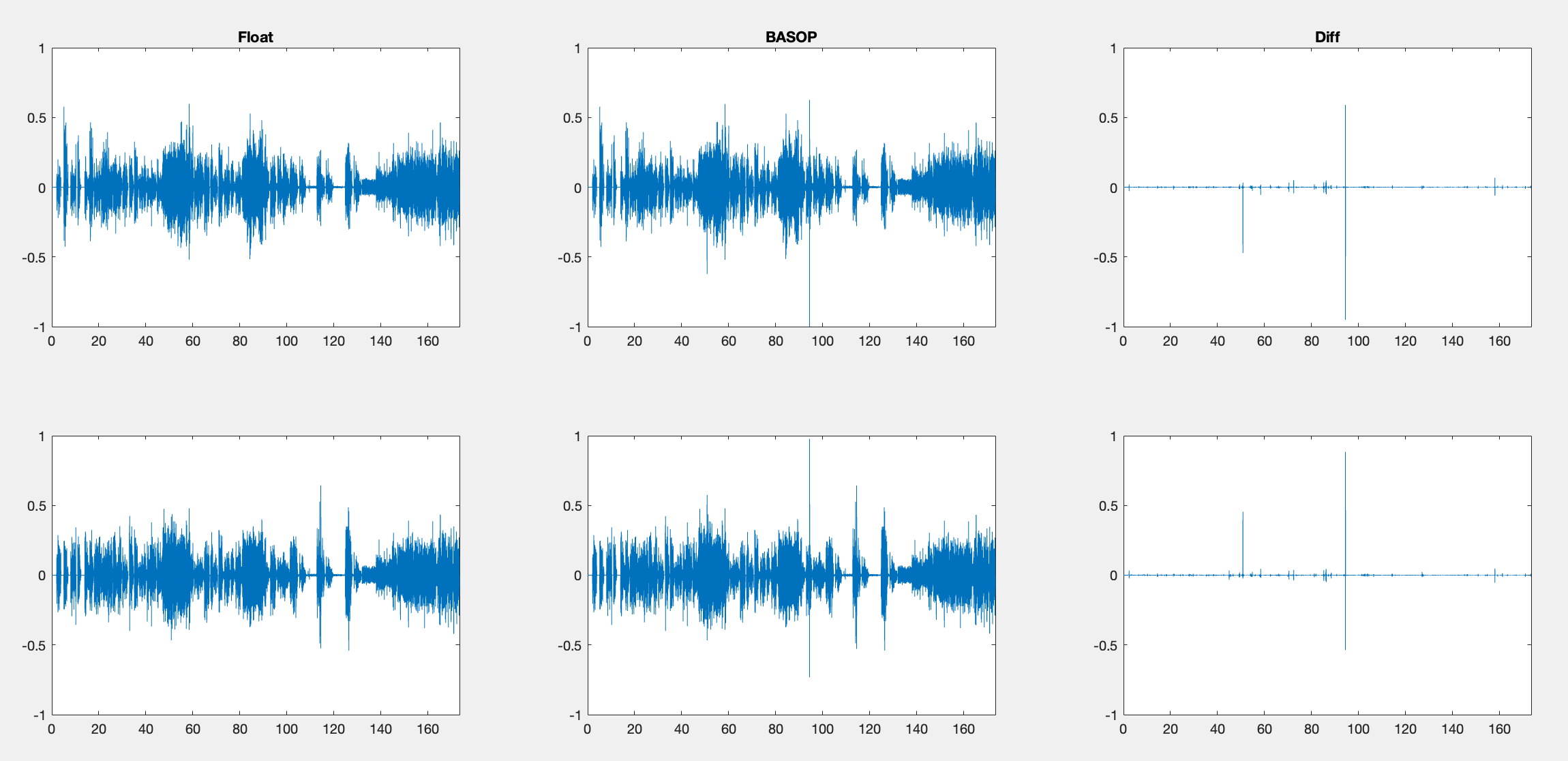 See the figure below for BASOP spikes. This is the float enc to BASOP dec combo. As this is rate switching, it is obvious that some switching artifacts are expected but this seems a bit worse and also is probably causing higher MLD of 16.5.