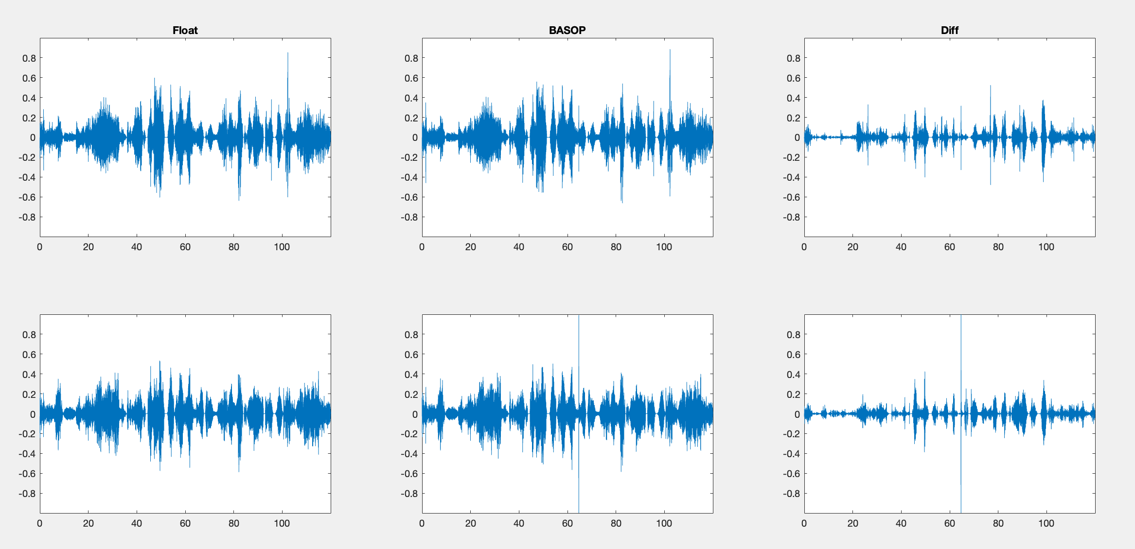 There seems to be a clipping or similar saturation spike in OMASA caused by BASOP encoder. See the figure below. This is with BASOP encoder to float decoder but same spike is there for full BASOP path.