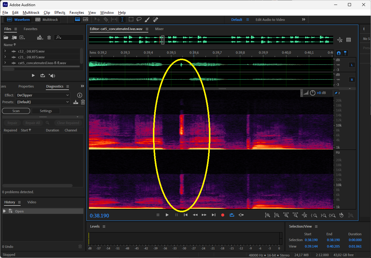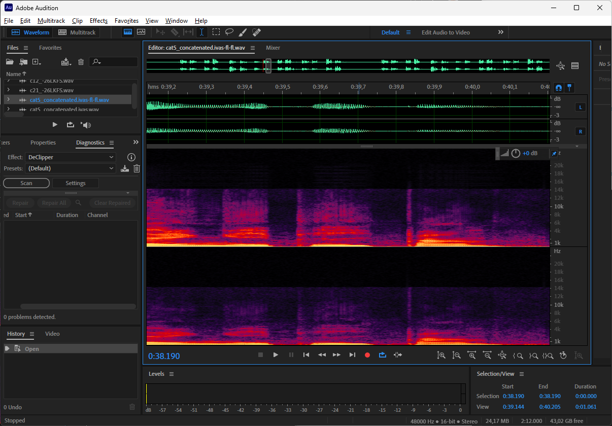 BWE artifact for OMASA 1 object -16 LKFS/-26 LKFS 24.4 and 48 kbps (c12 and c14 in P800-18)