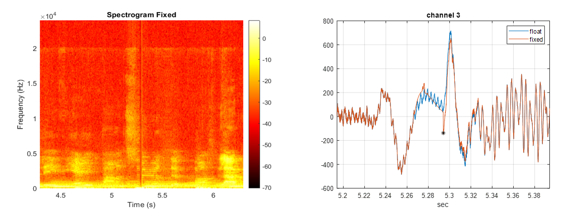 At channel 3, there is an audible distortion at 5.29 s due to incorrect scaling at the end of con_tcx_ivas_fx(), where saturation occurs. It seems that instead of using a fixed scaling factor for the synth buffer, a dynamic scaling factor should be calculated.