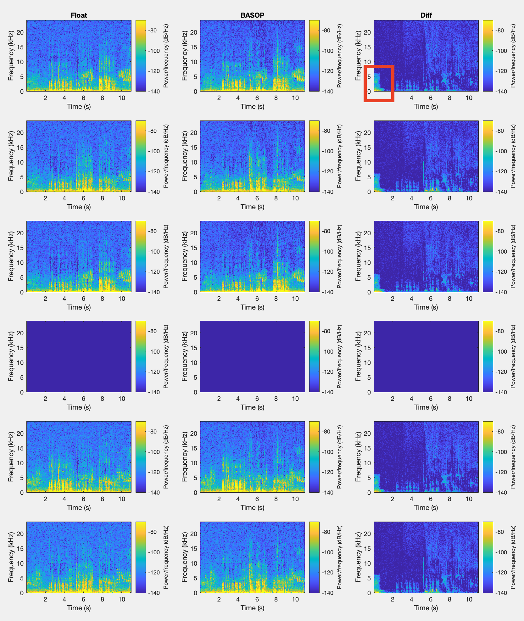There is a bit peculiar difference visible in spectrogram with at least this specific recording. Probably can be present in other cases as well. This also seems to happen only with IVAS_rend and not IVAS_dec. In practice, there seems to be something missing in the BASOP version that is present in float.