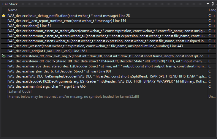 Assert (overflow) in L_add in stereo_dft_dmx_nrg_fx: https://forge.3gpp.org/rep/sa4/audio/ivas-basop/-/blob/main/lib_dec/ivas_stereo_dft_plc_fx.c#L788