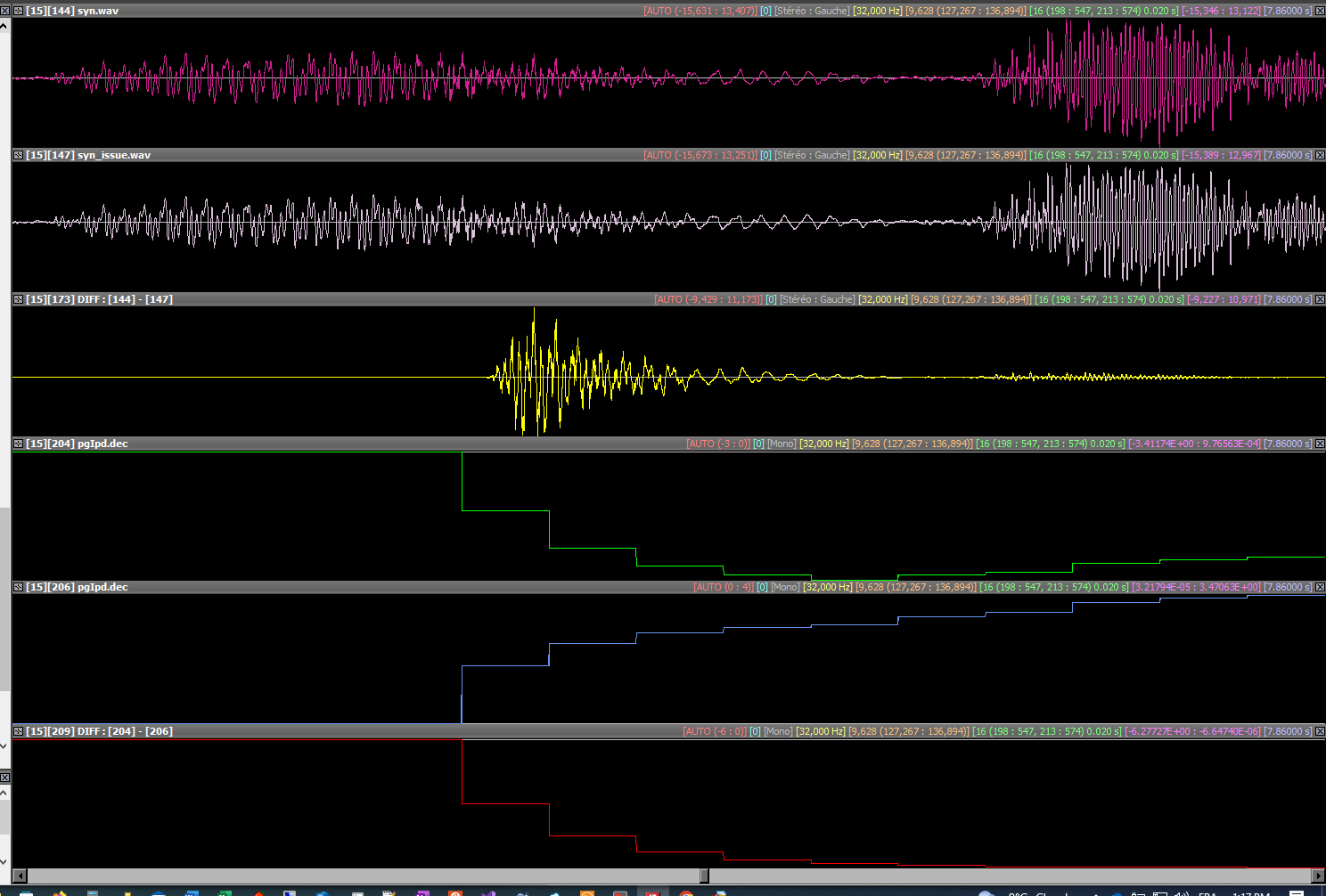 The difference appeared at frame 204 in the left channel. In order on the figure,