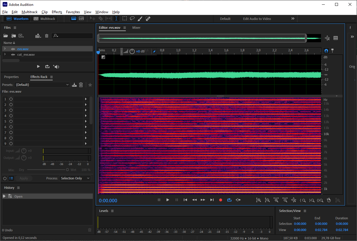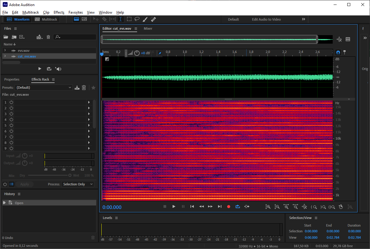 CopyAudio -P integer16,,32000 evs.raw evs.wav # Convert to wav
