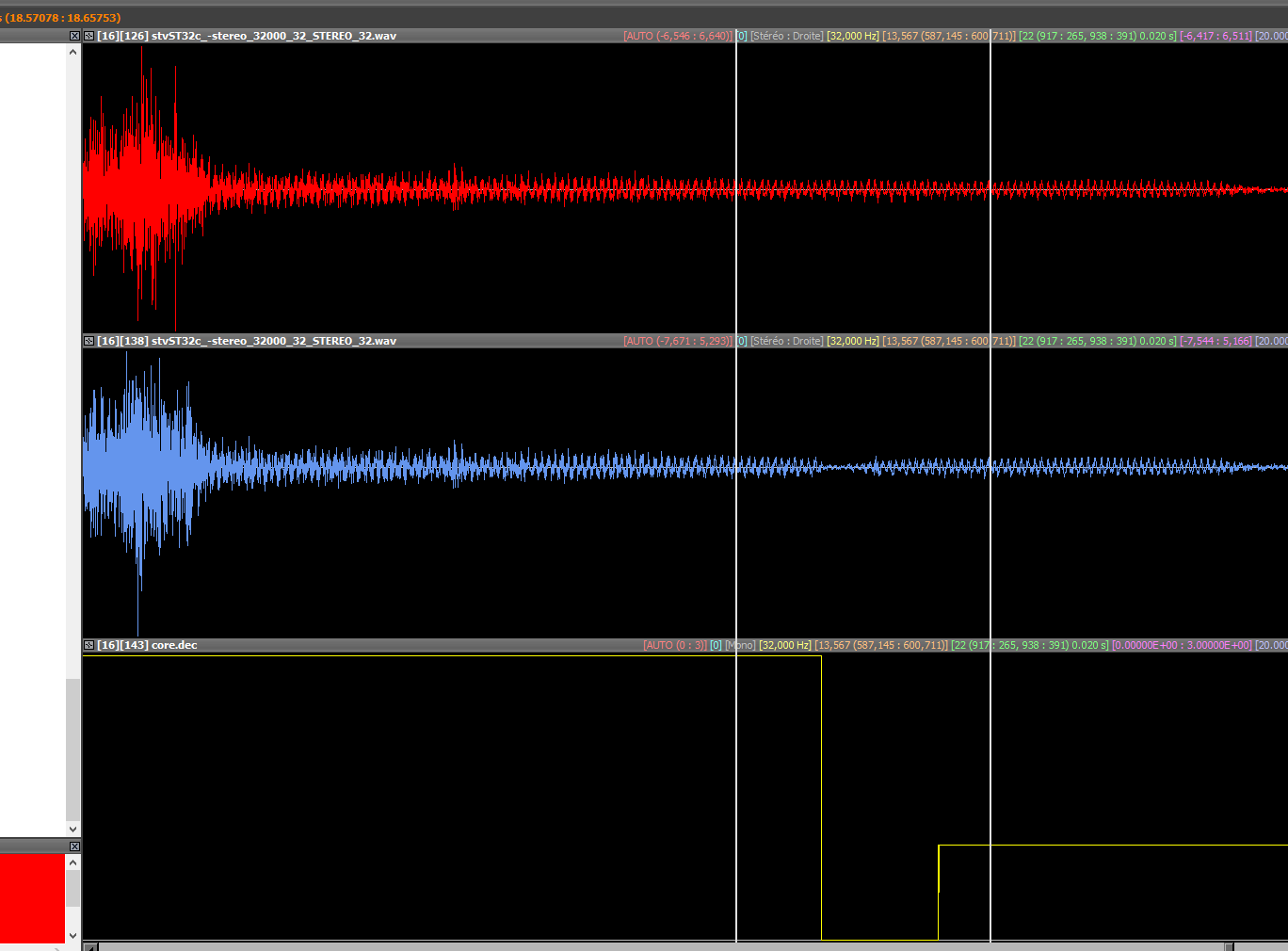 when decoding at 32 kbps, there is an energy drop when switching from HQ-core (core==3) to ACELP (core==0). This can be seen in the image below for right channel: