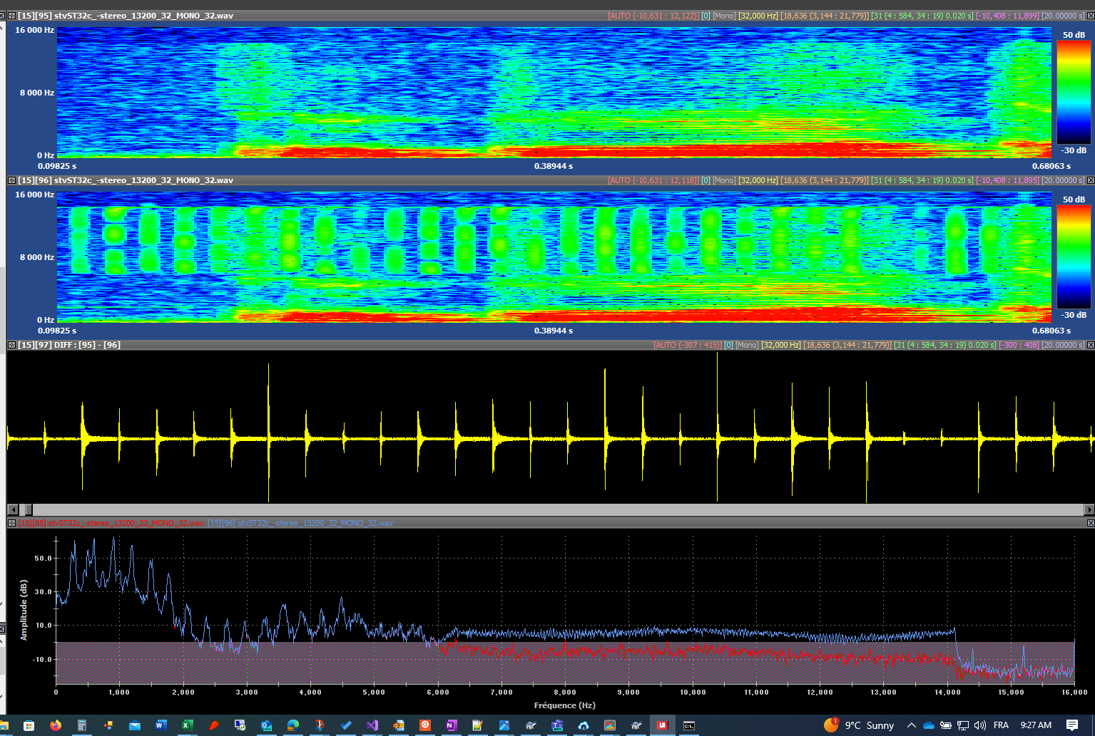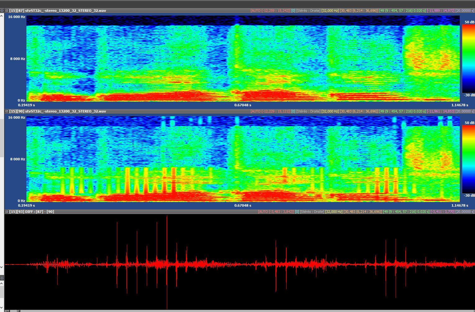 On the pictures below, you see the right channel (float, fix and diff between float and fix), but same problem is there for the left channel