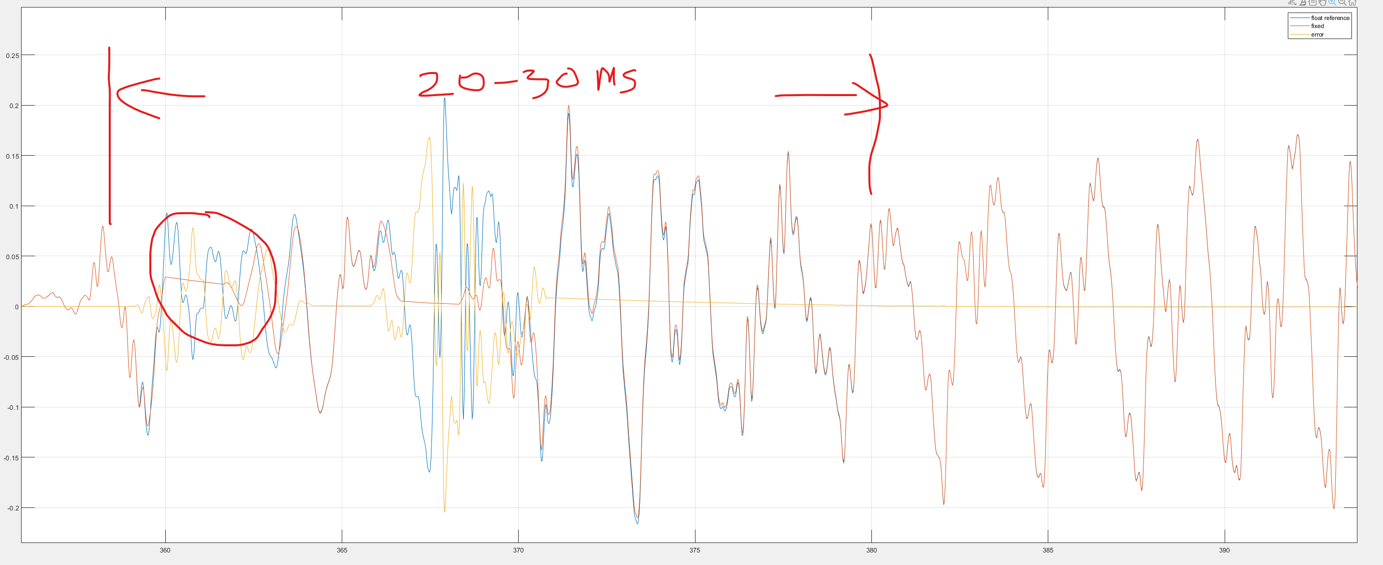 Audio distortions have been observed with a list of test_sba_enc_BWforce_system test cases, giving rise to high mld scores (~8.5-11.3). The observed symptoms are similar, as illustrated in the plots below.
