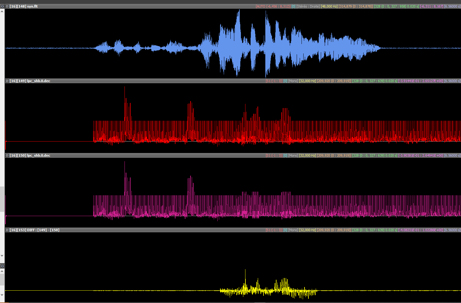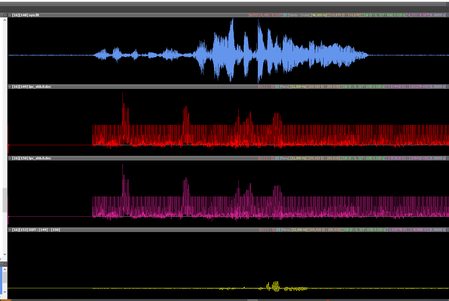 The second figure shows the lpc coefficient printed out for float and fix and the different between both.