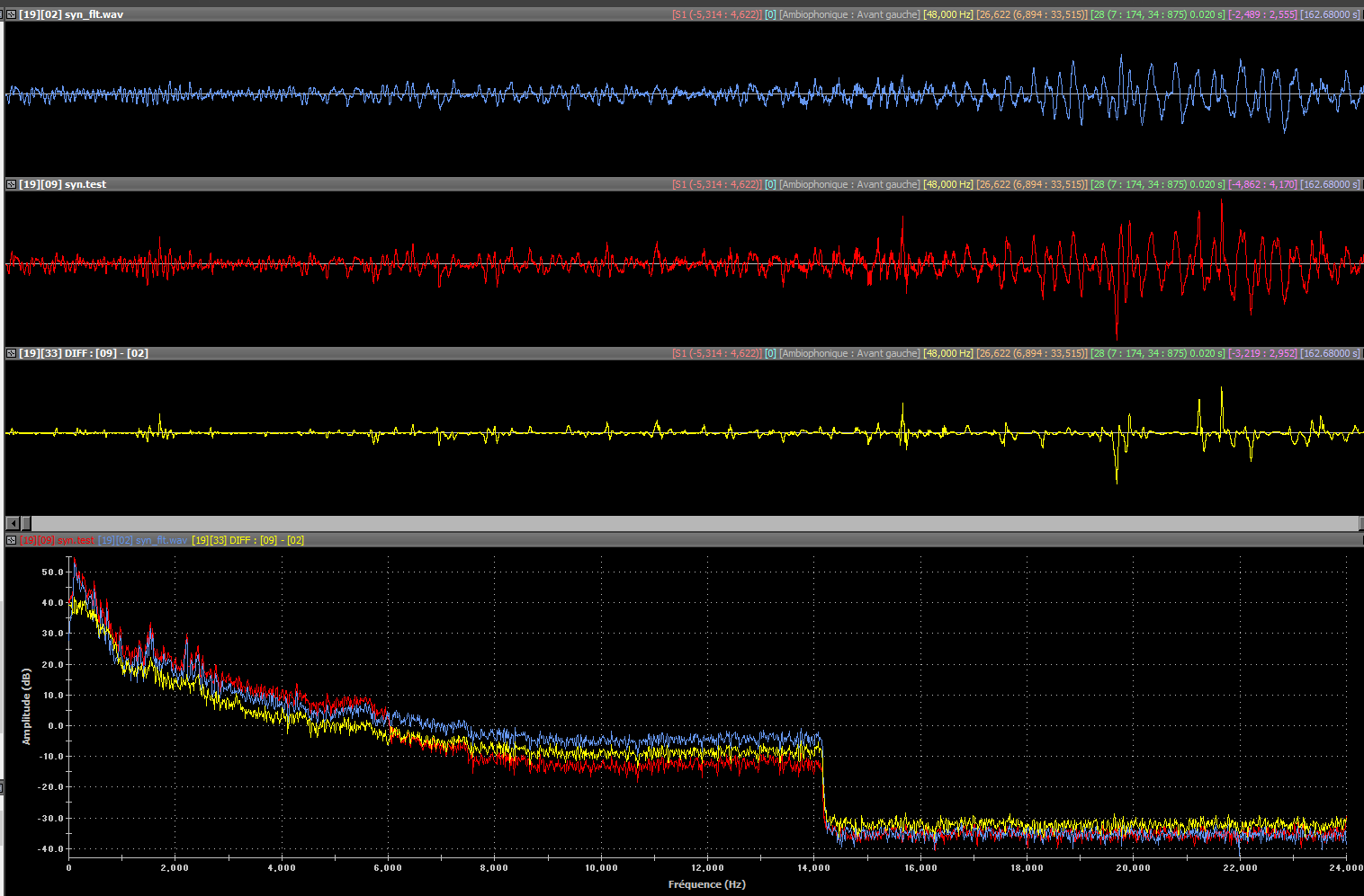 - Difference between float and fixed (± 3000 of amplitude, compared to ±5000 for the synthesis on these frame)