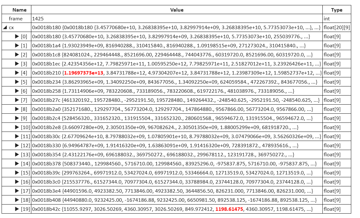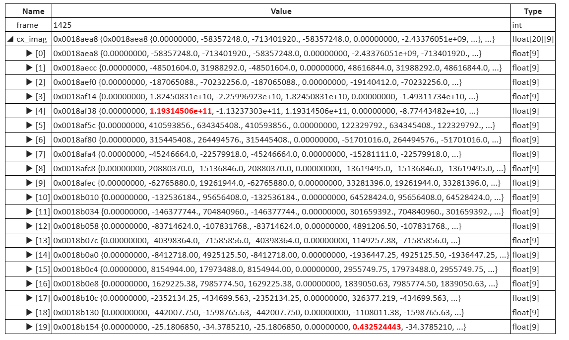 The issue arises at frame 1425 in the function ivas_dirac_dec_output_synthesis_cov_param_mc_synthesise_slot_fx when attempting to scale output_f_real_fx. The values to be scaled are coming incorrect. Upon investigation, it was found that these values depend on the buffer updated in ivas_param_mc_dec_digest_tc -> ivas_dirac_dec_output_synthesis_cov_param_mc_collect_slot. Specifically, for the output buffers cx_fx and cx_imag_fx at the 19th index, we are unable to achieve the required precision. This is because the values at indices 1 to 18 are comparatively very large than those at the 19th index. Refer to the table below for the values of cx and cx_imag.