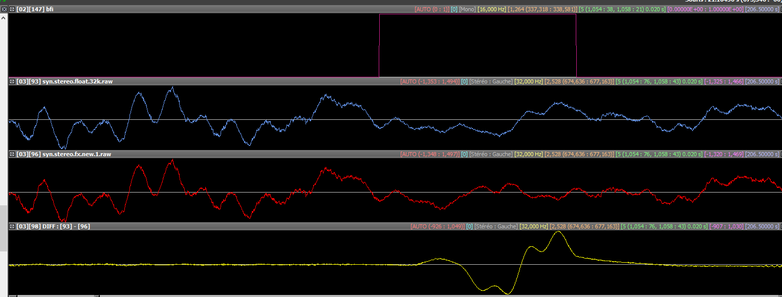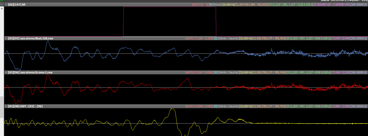 the figures below show some issues that can be perceived when during frame lost concealment. Not clear yet if it is an ITD issue or an excitation reconstruction issue, but the change in the temporal shape is clear