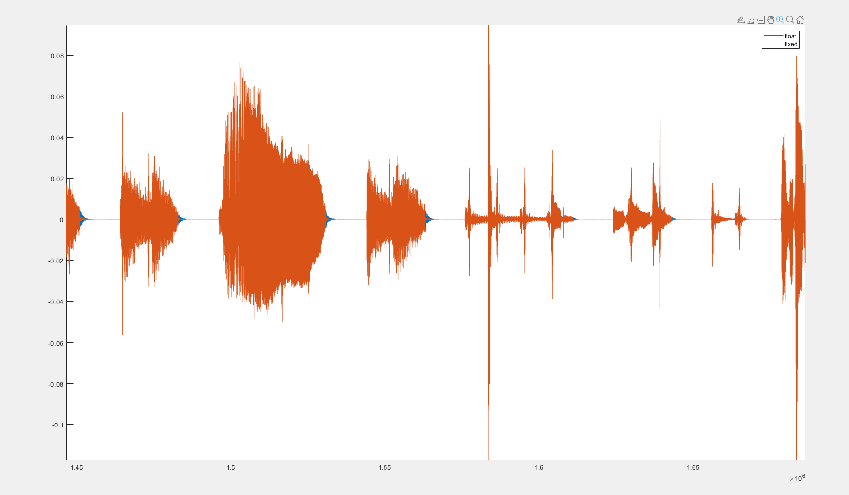 Observation: fixed-point output declined significantly faster than the floating-point one.