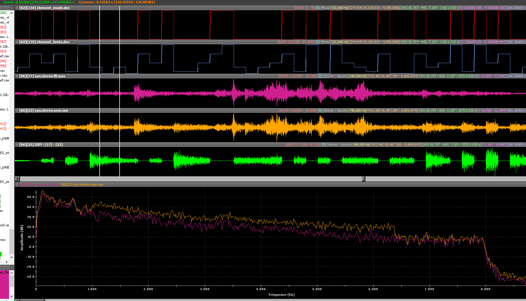 at least between 134 and 143s, we can see the synthesis diverging a lot from the floating point when going from MDCT to DFT