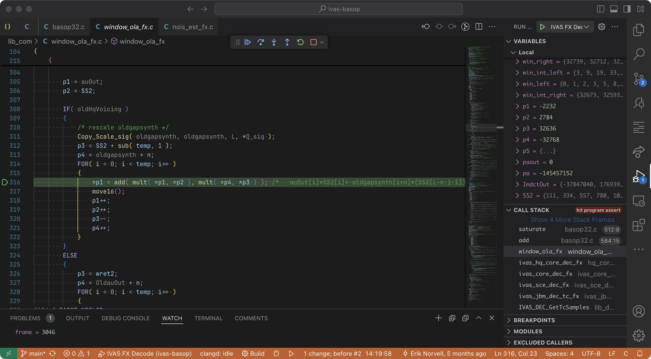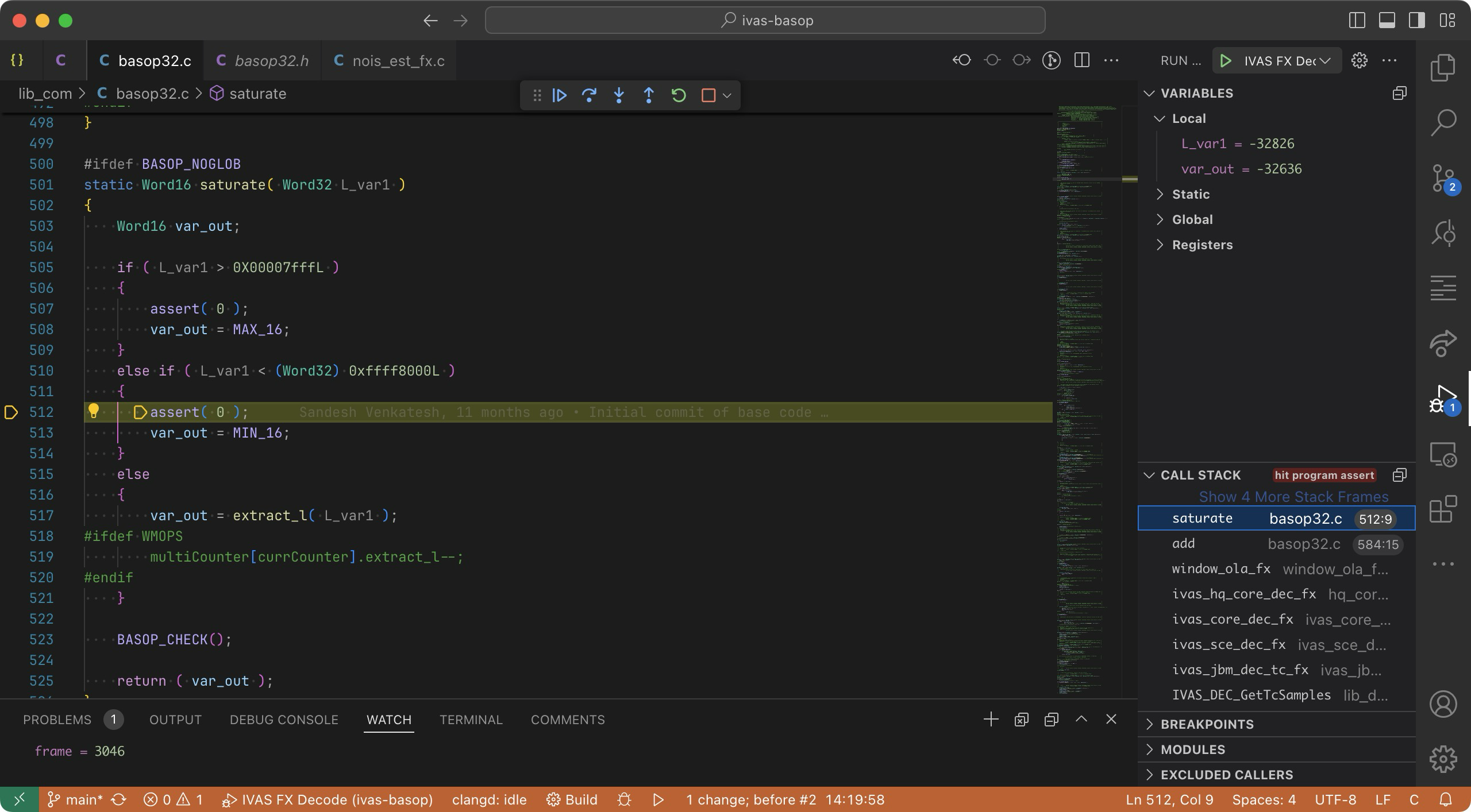 The decoder crashes for the complexity measurement job with an assert in basop32.c:512: