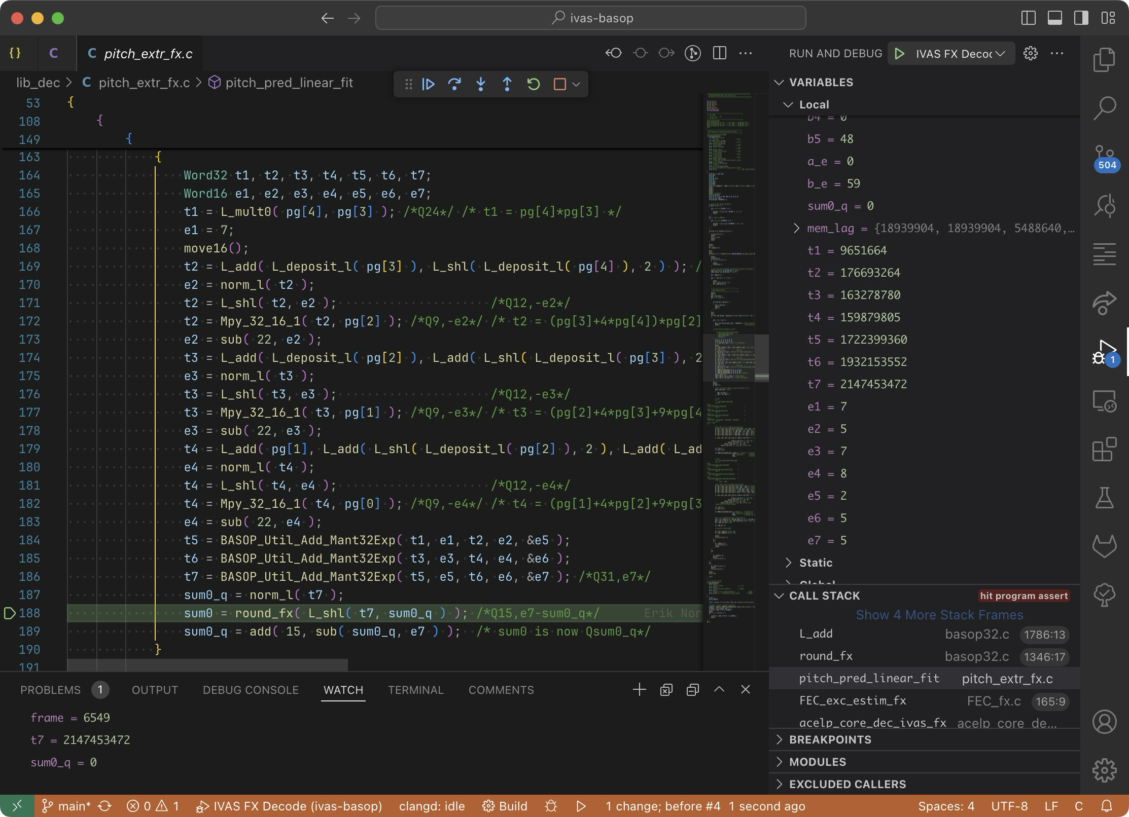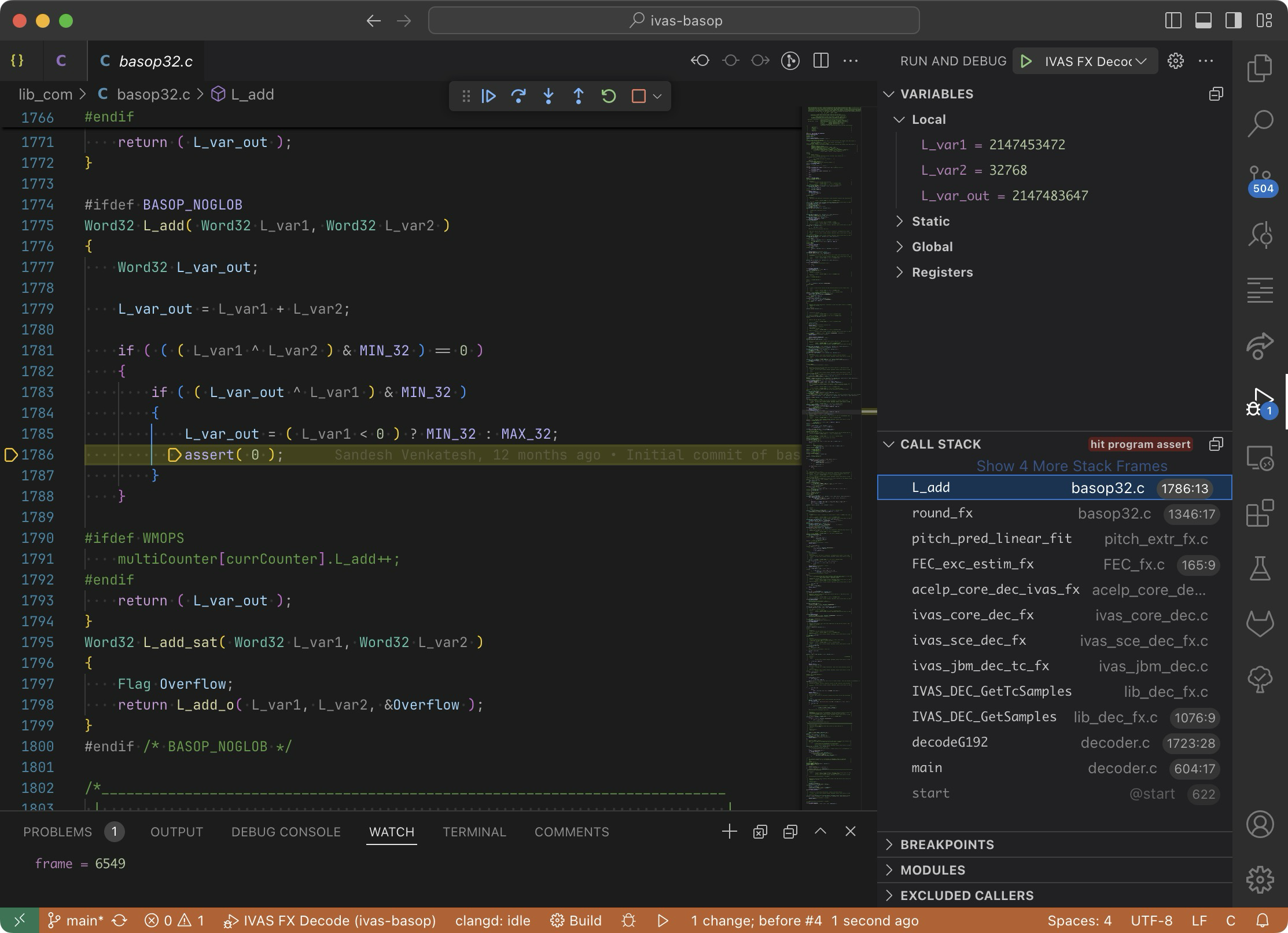 Assertion failed: (0), function L_add, file basop32.c, line 1786.