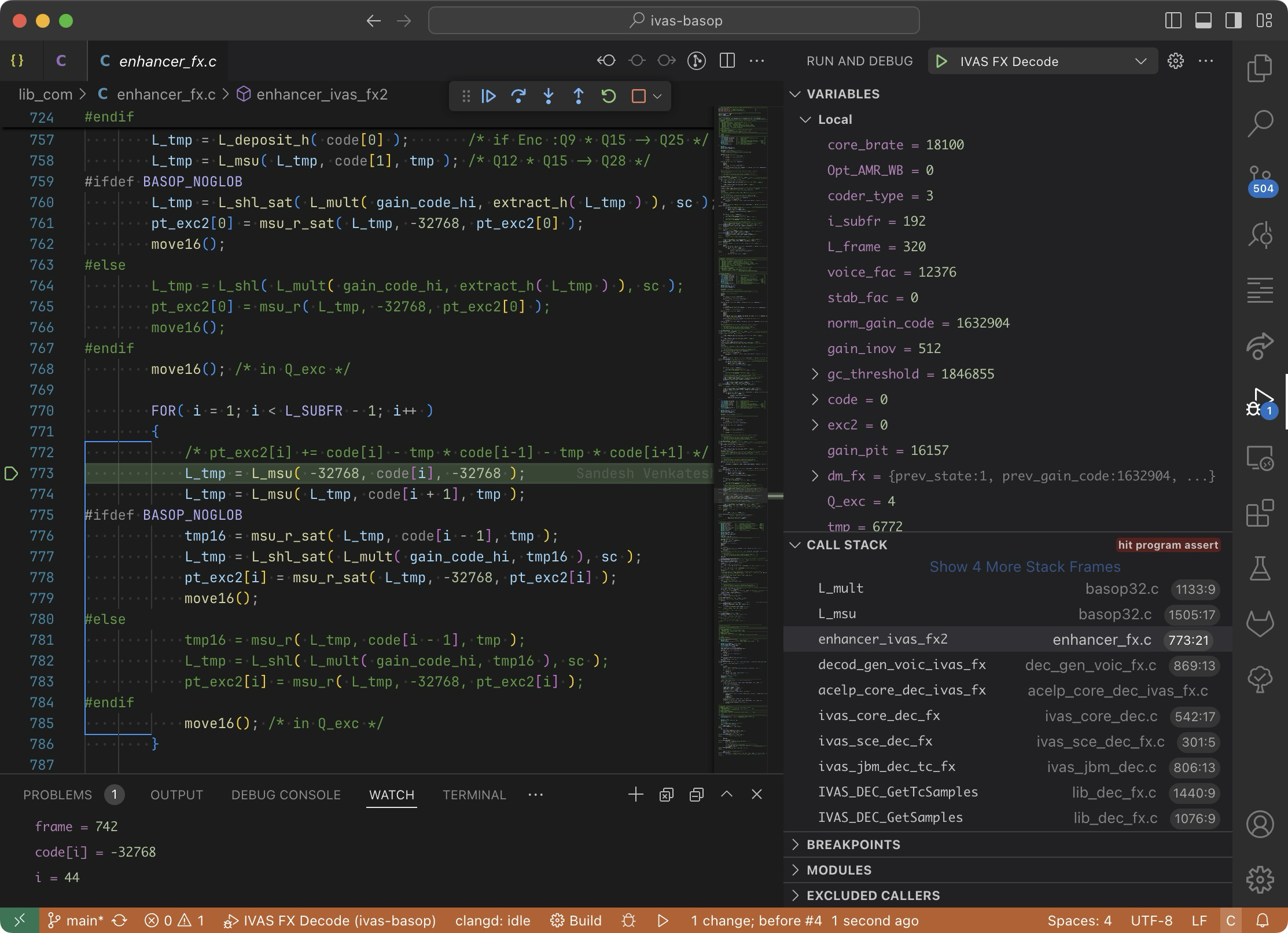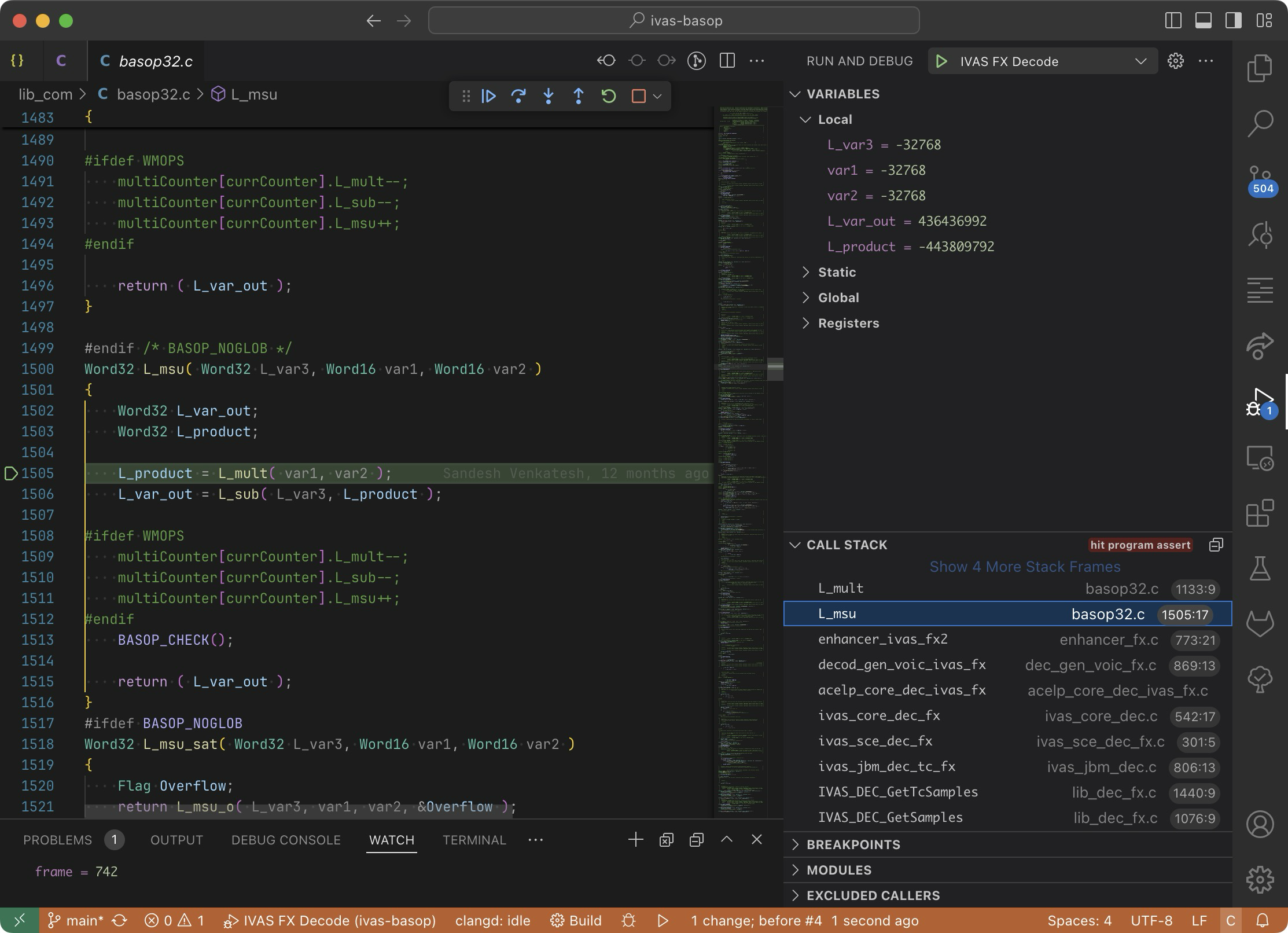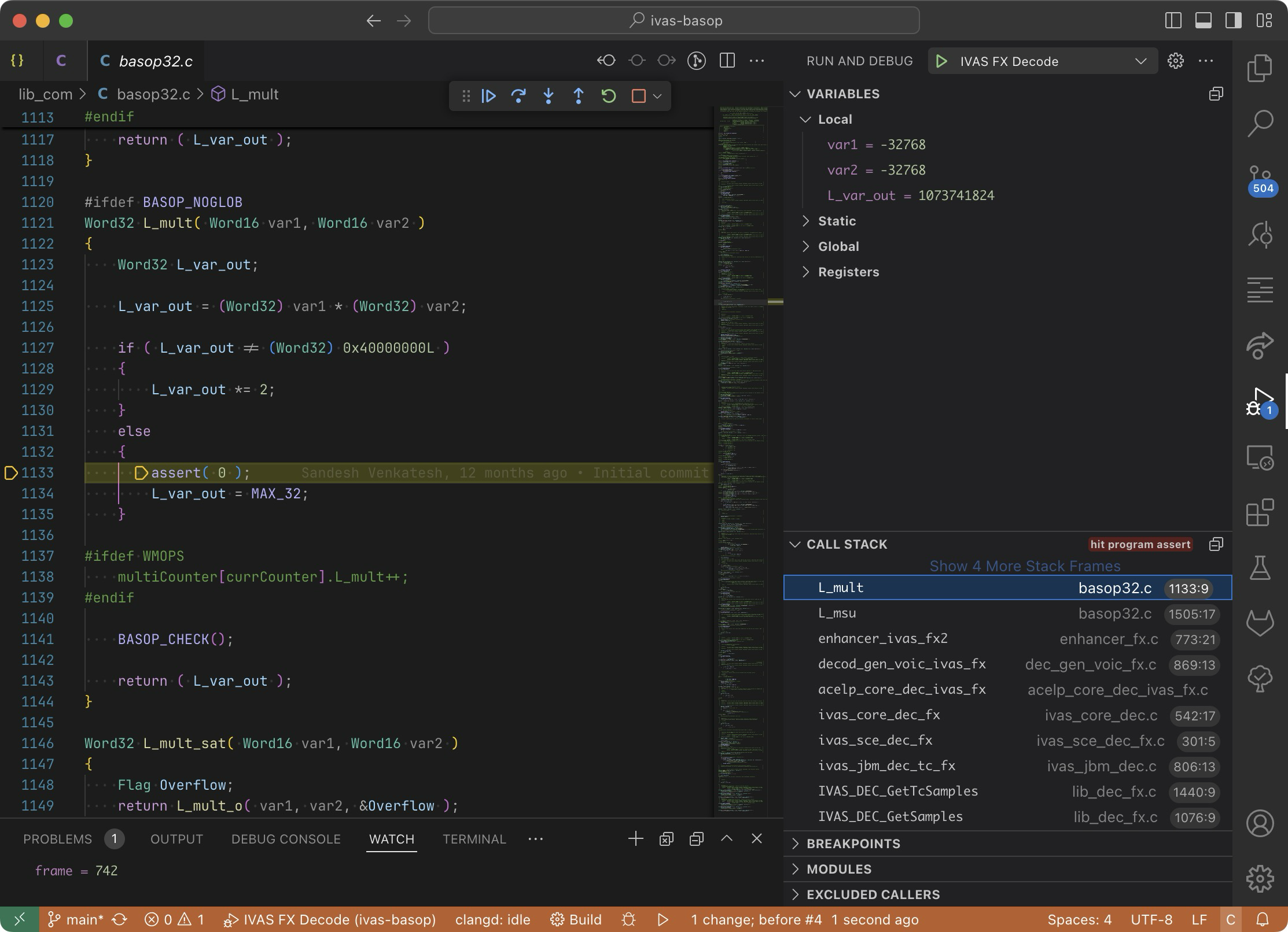 Assertion failed: (0), function L_mult, file basop32.c, line 1133.