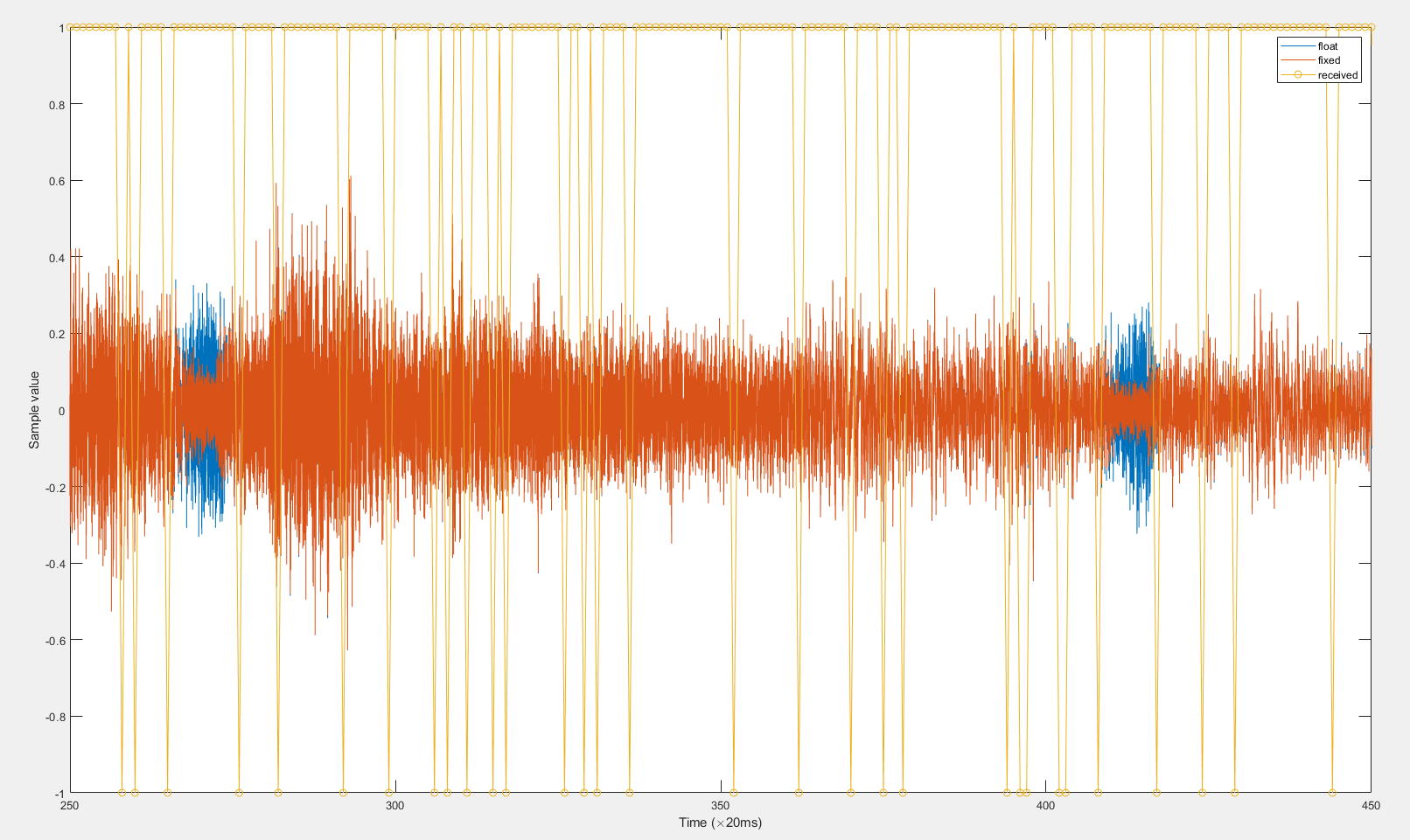 Loss of signal amplitude when decoding some received packets, as illustrated in the following plot.