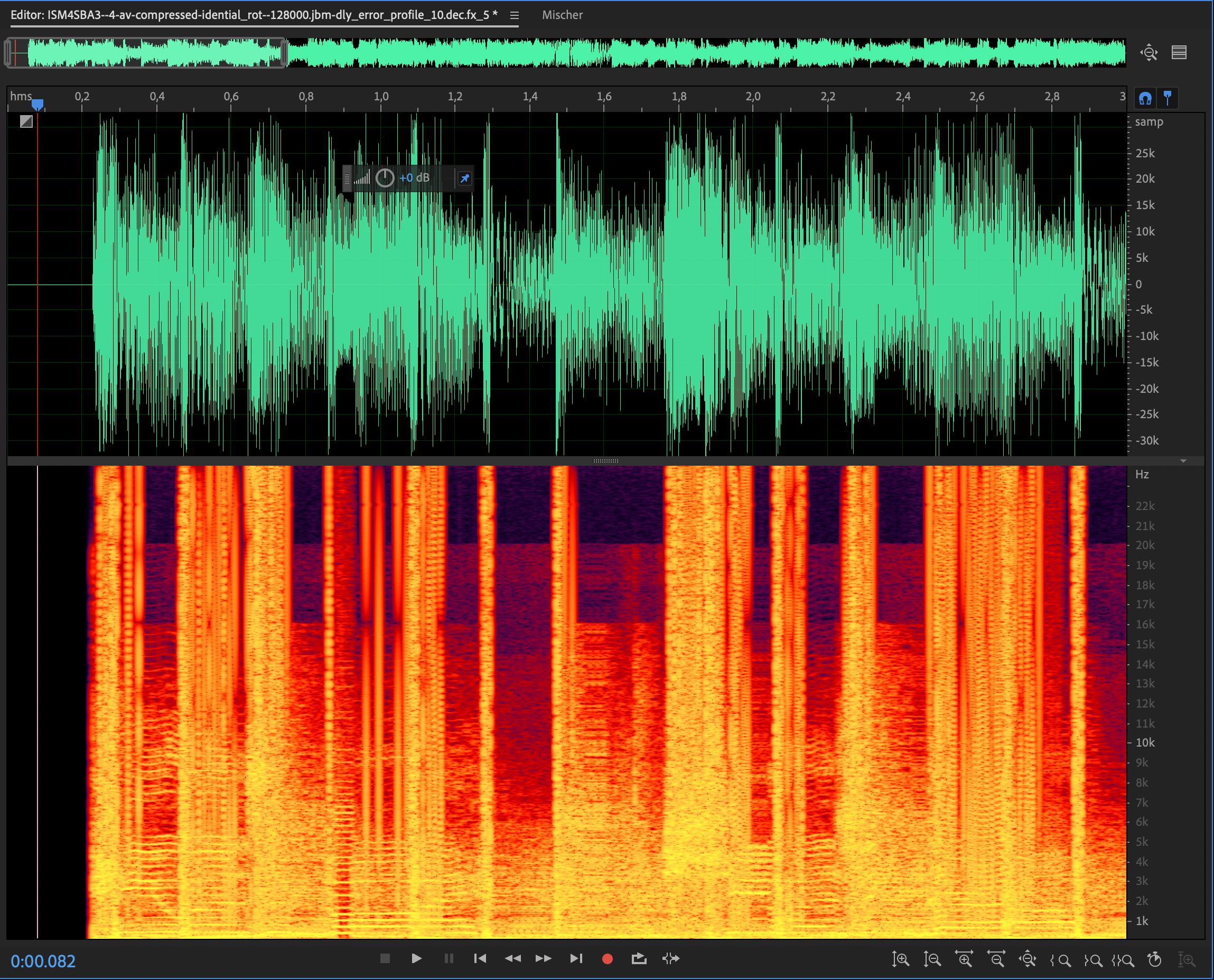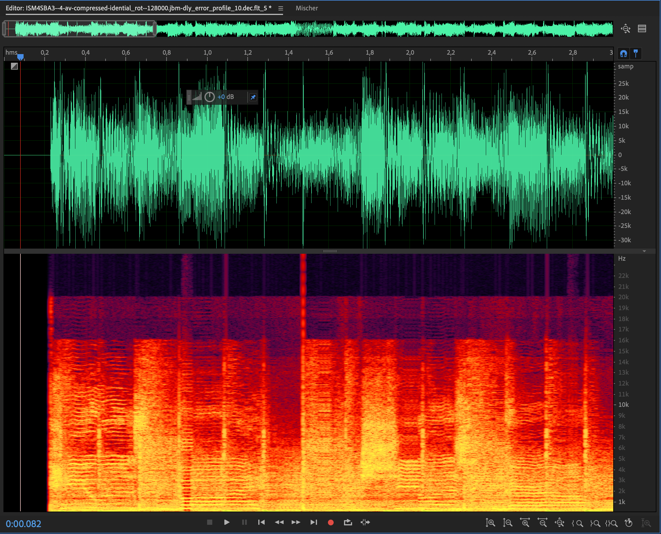 When decoding OSBA with JBM at 128 kbps (pre-rendering mode), we see severe saturations across the complete file, resulting in high MLD diffs.