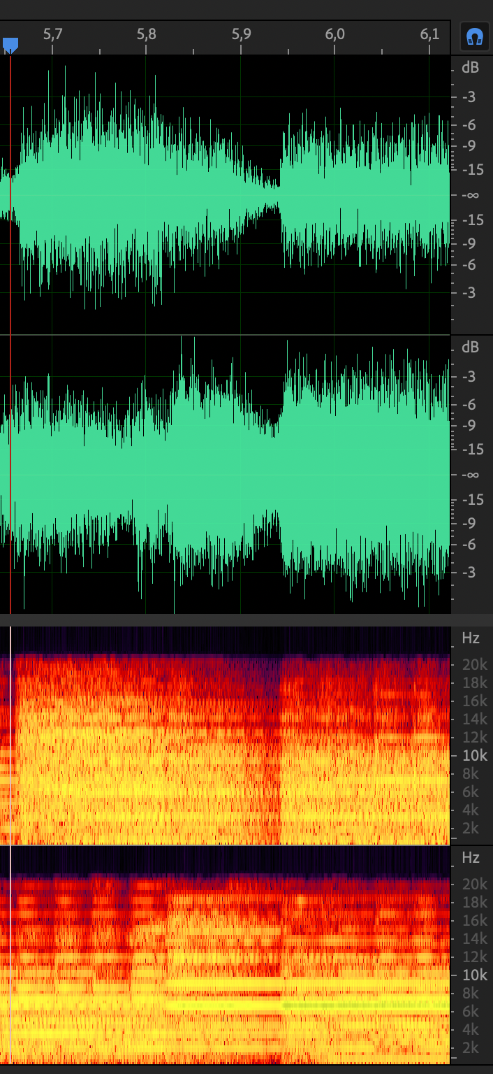Stereo decoding with JBM: energy difference in right channel despite similar TSM