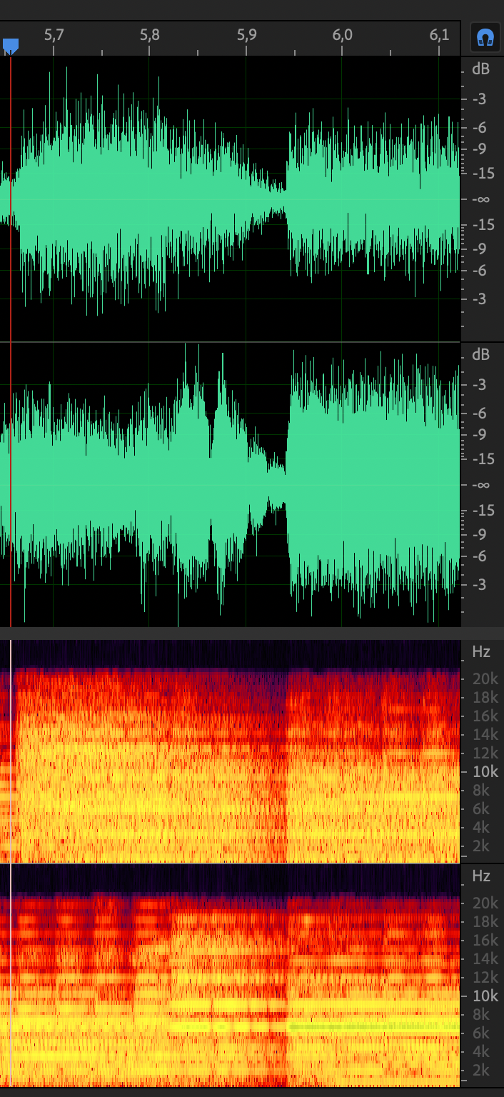 In JBM decoding where same TSM between float and fixed-point decdoer seems to be applied, there is a signal section with high MLD. The right channel is attenuated wrt the float reference: