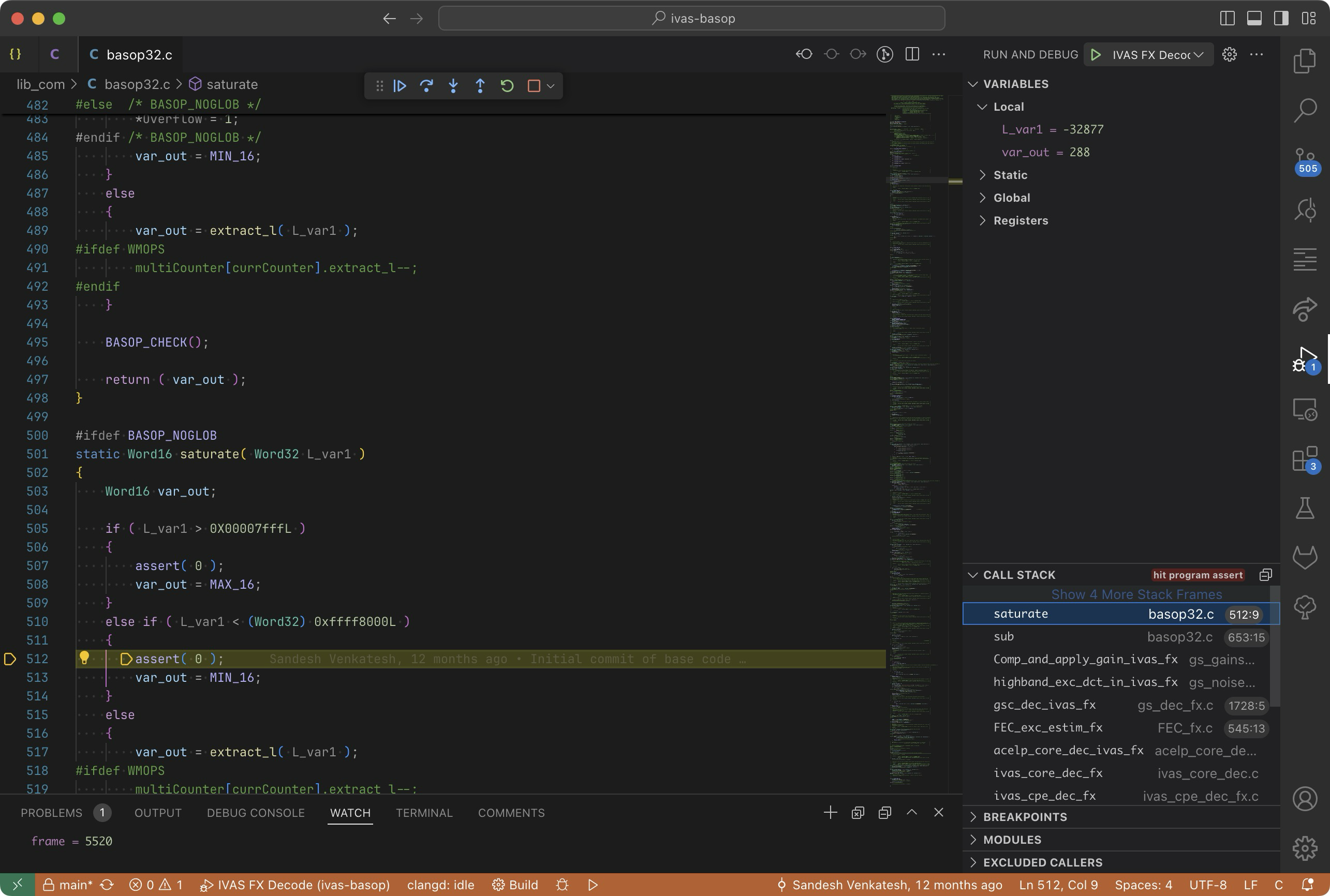 Assertion failed: (0), function saturate, file basop32.c, line 512.